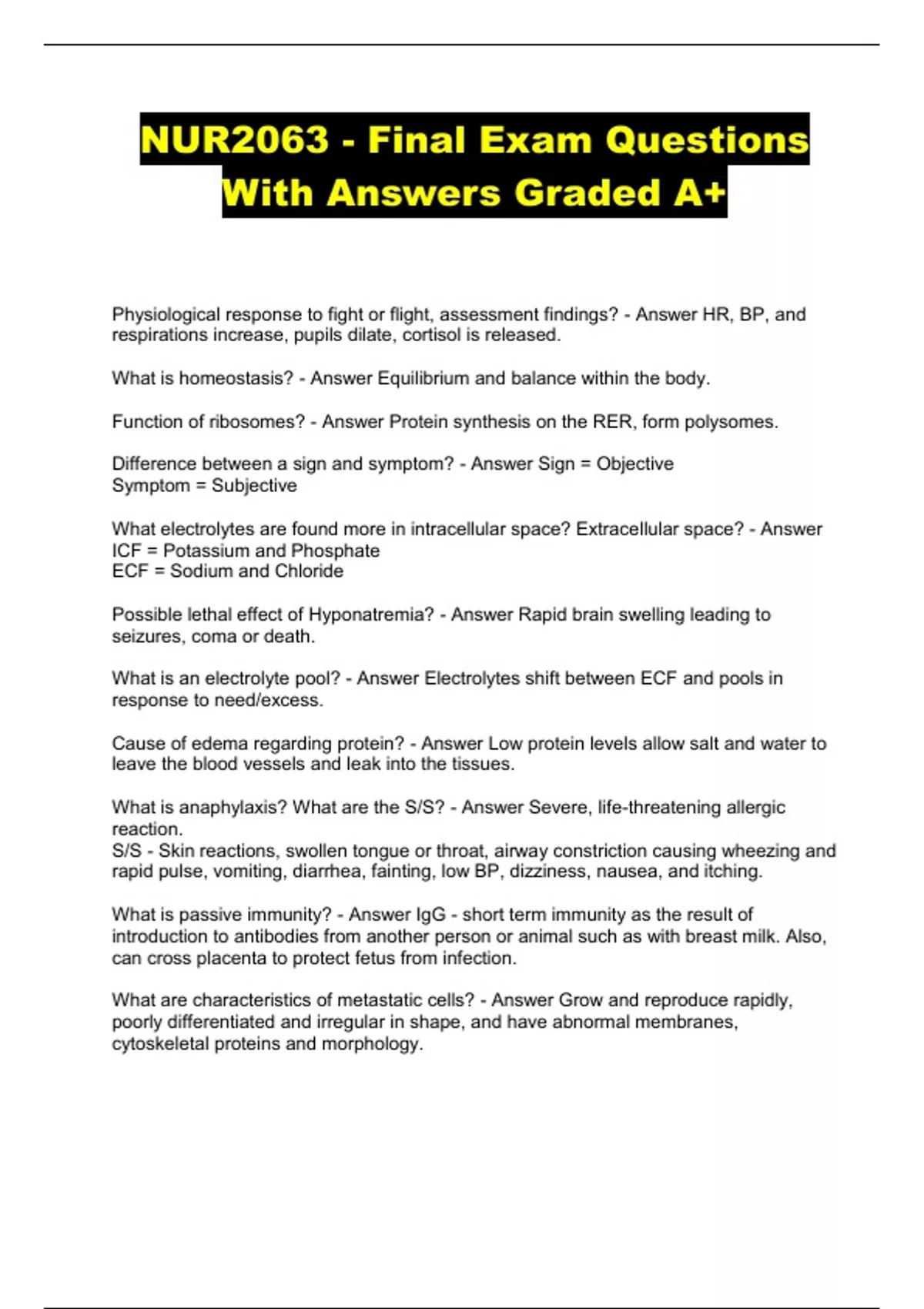 NUR2063 Final Exam Study Guide Questions With Answers Graded A+ @ 2023