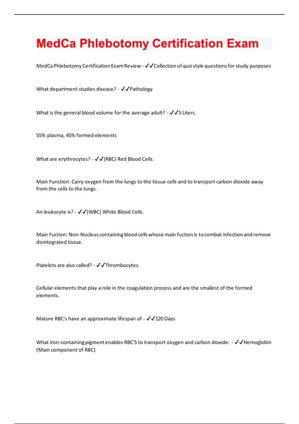 MedCa Phlebotomy Certification Exam | Questions and Answers(A+ Solution guide)