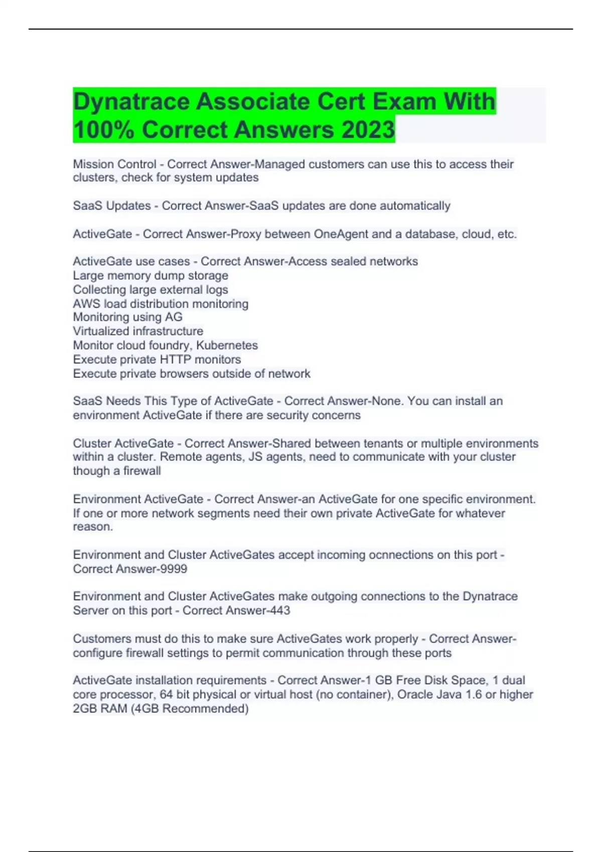 Dynatrace Pro Certification Study Guide With With Complete Solutions. Dynatrace Study Guide Questions With Complete Solutions. Dynatrace Exam Topics - 4.5 Questions And Answers 2023 DT Pro Exam With 100% Correct Answers 2023 FANTASTIC 2 DYNATRACE EXAM WITH 100% CORRECT ANSWERS 2023 Dynatrace Professional Certification Written Exam With 100% Correct
