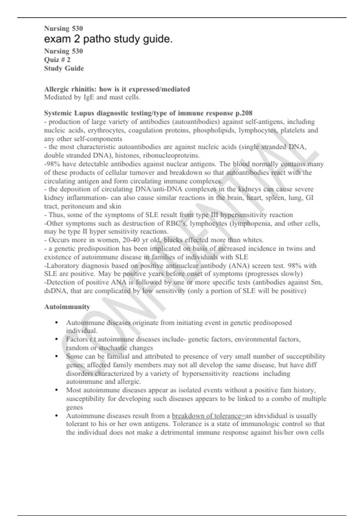Exam (elaborations) NSG 530/NU 530 Study Guide Quiz 4 LATEST GUIDE 2 Exam (elaborations) NSG 530/NU 530 Quiz #2 Review LATEST UPDATE 3 Exam (elaborations) NSG 530 STUDY GUIDE Patho Quiz 1 LATEST graded A 4 Exam (elaborations) N5315 Advanced Pathophysiology Neuro Anatomy and Physiology 5 Exam (elaborations) NUR 2063 / NUR2063: Essentials of Pat