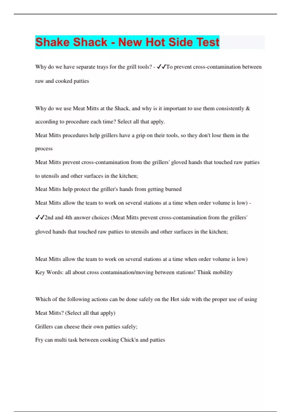 Shake Shack - New Hot Side Test | 2023 | Questions with 100% Correct Answers | Updated & Verified