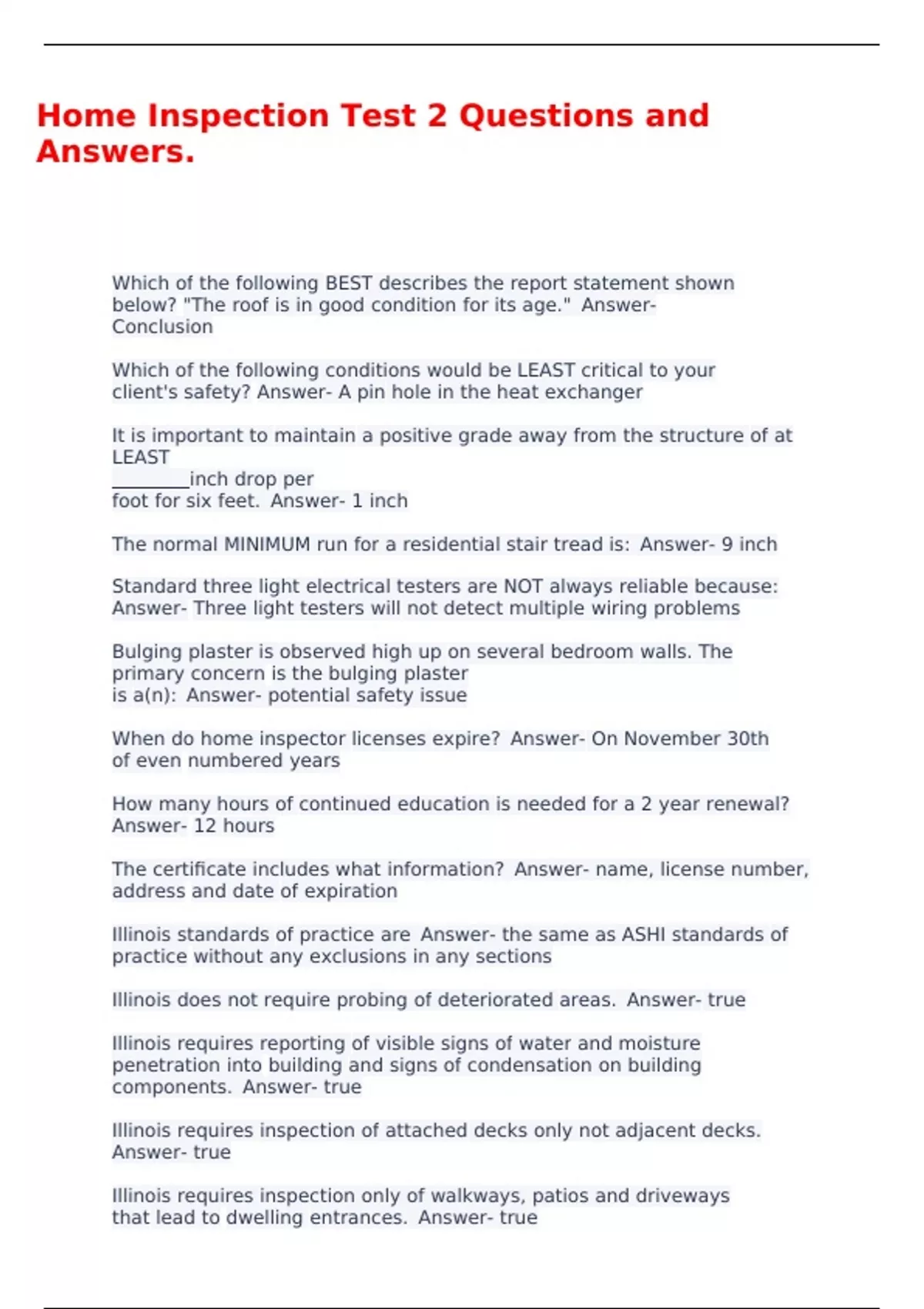 National Home Inspector Exam (NHIE) Whole House Practice Quiz (NHIE Whole House Practice Quiz) With Correct Answers.