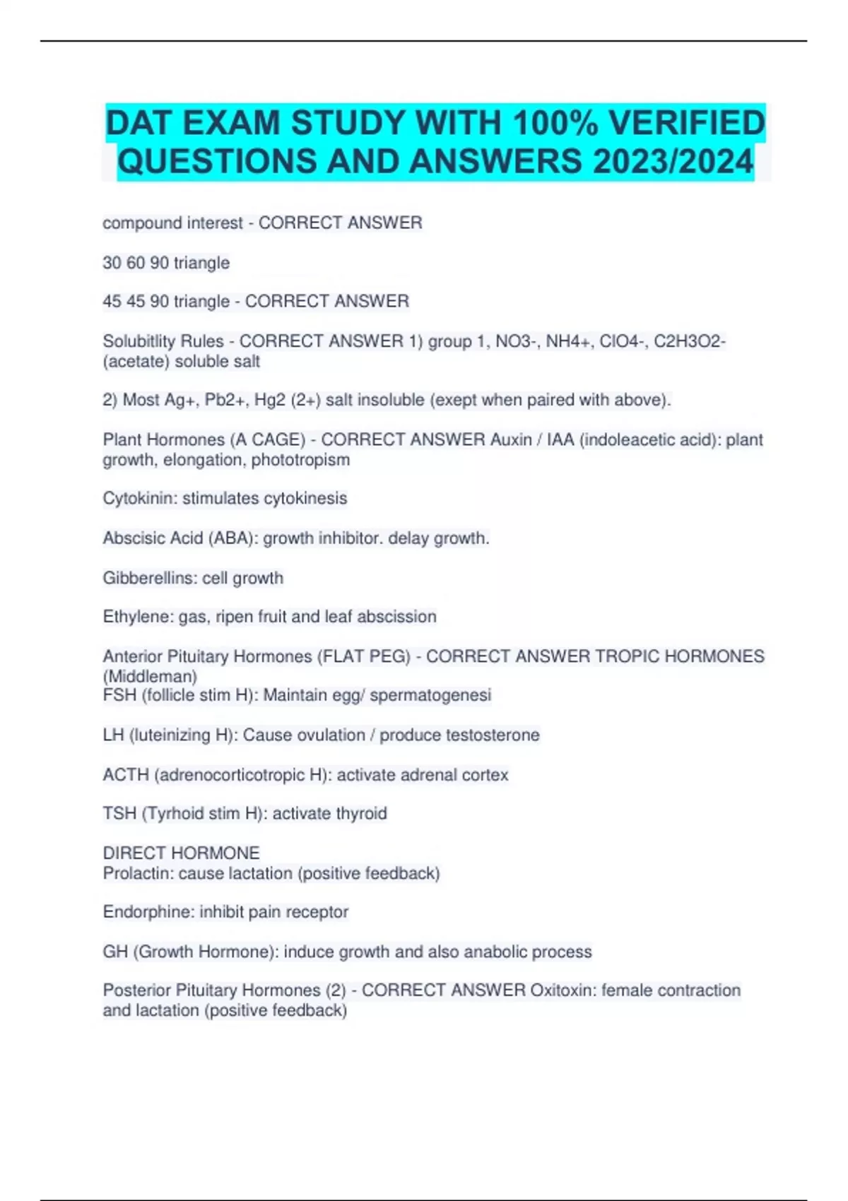 Bundle DAT Exams for American Dental Association (ADA) with 100% Verified Solutions (Graded A+)