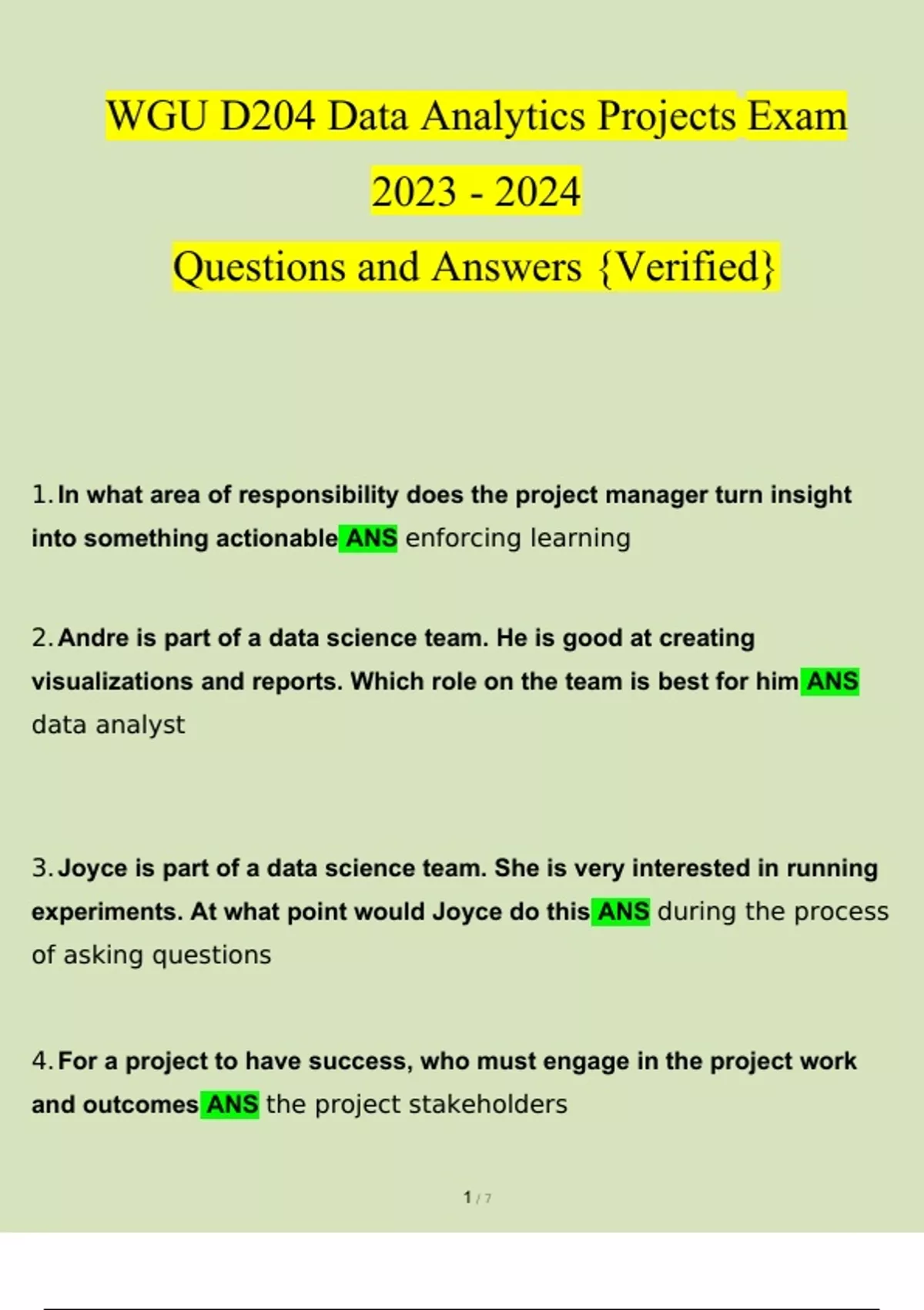 WGU D204 The Data Analytics STUDY BUNDLE (COMPLETE PACKAGE)(Verified Answers)