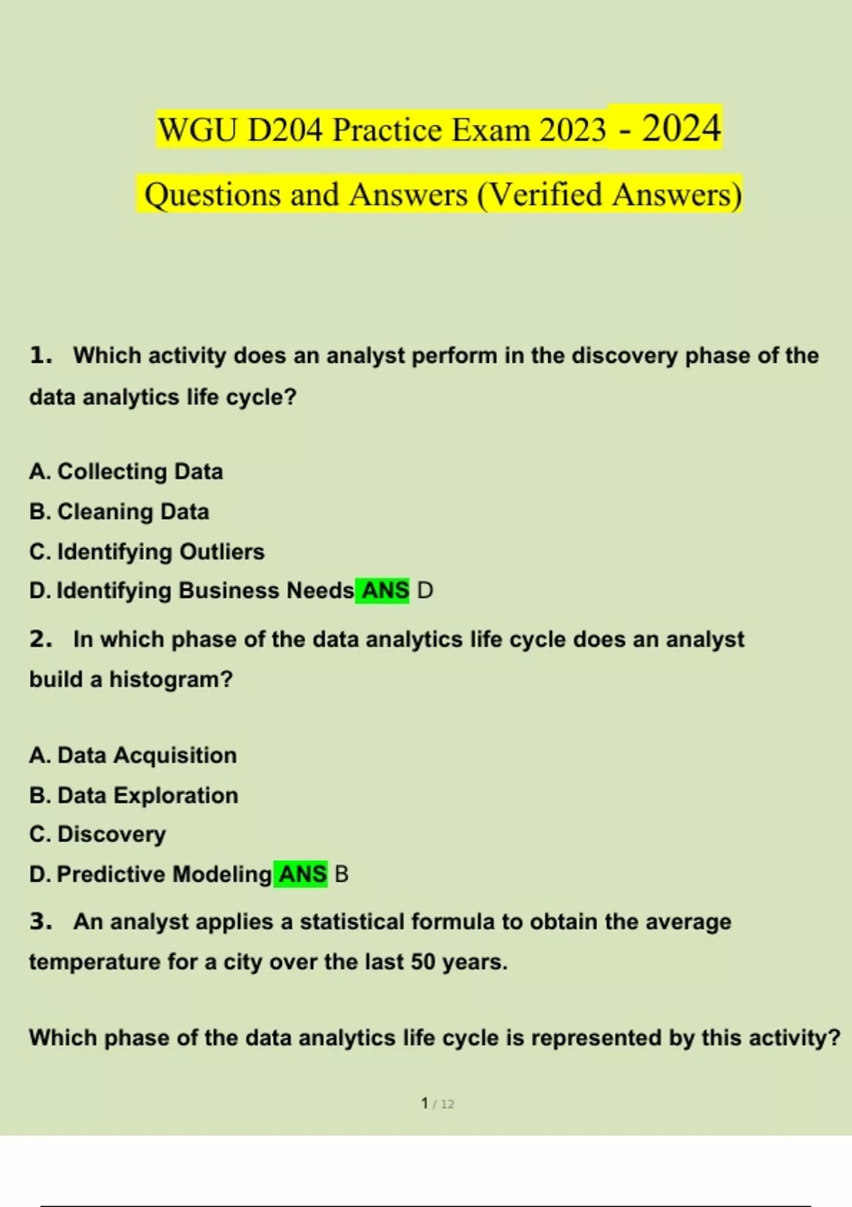 WGU D204 The Data Analytics STUDY BUNDLE (COMPLETE PACKAGE)(Verified Answers)