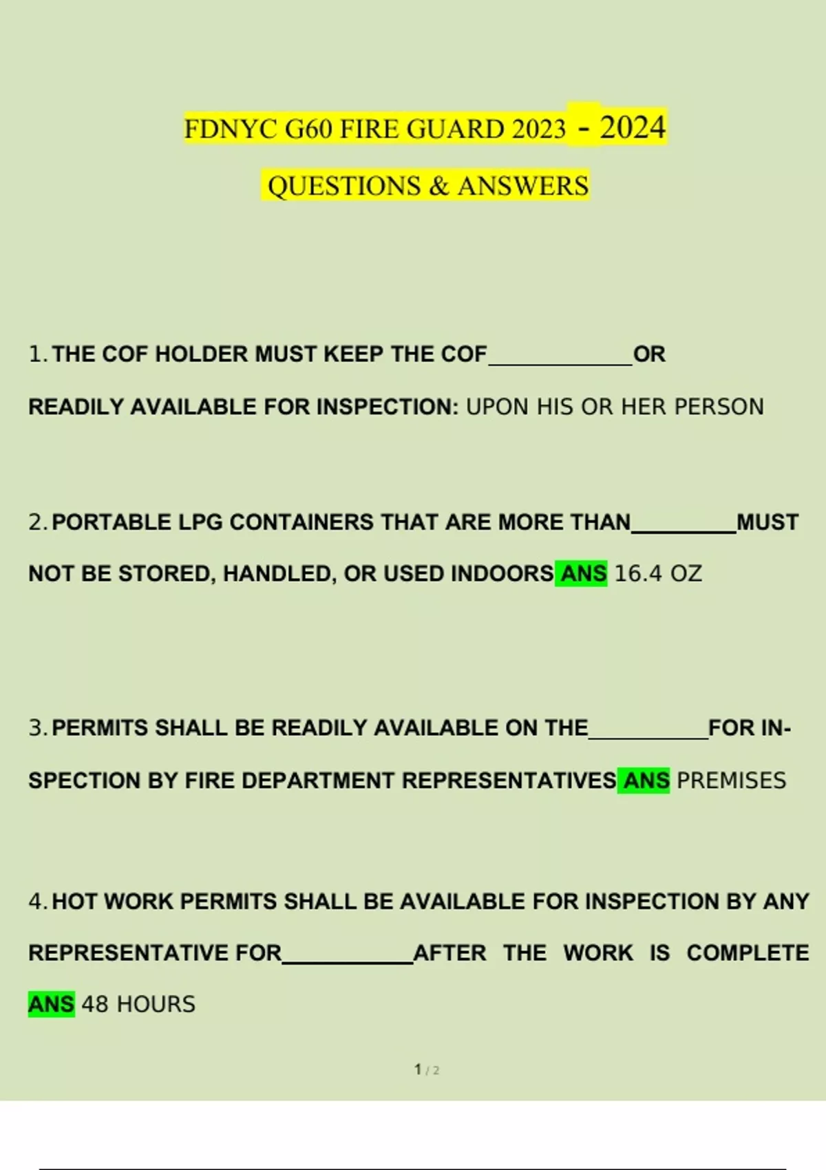 FDNYC G60 FIRE GUARD Practice Exam Questions and Answers (Verified Answers)