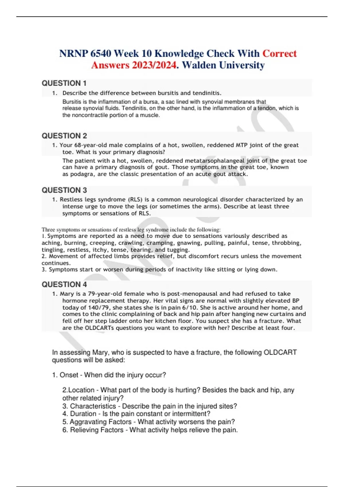 {COMPLETE GUIDE}NRNP 6540 WEEKS KNOWLEDGE CHECK, MIDTERM EXAM & FINAL EXAM.ALL IN ONE BUNDLE.TOP PRIORITY PAPERS ACCURATE FOR SUMMER-SPRING SESSIONS.100% CORRECT(VERIFIED & GRADED A+) PASS GUARANTEE