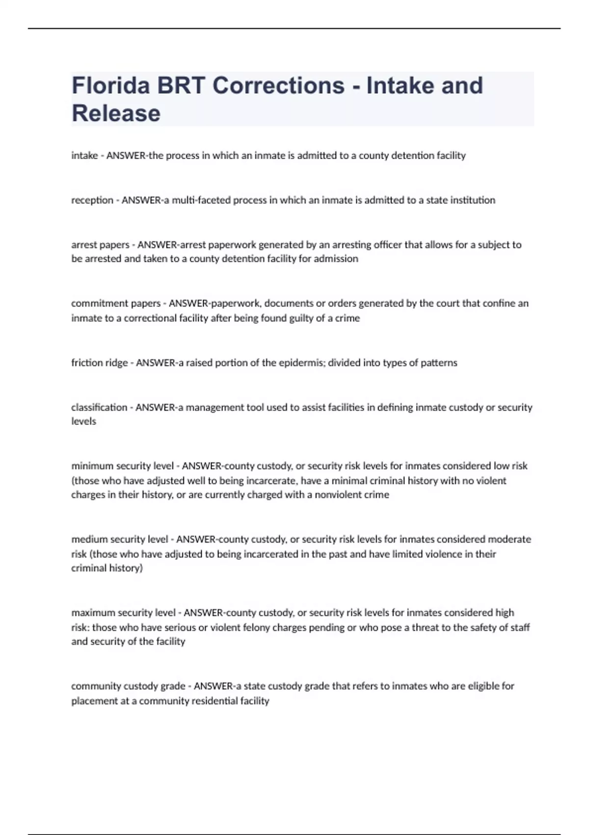 Florida BRT Corrections - Introduction to Corrections Exam with 100% correct Answers