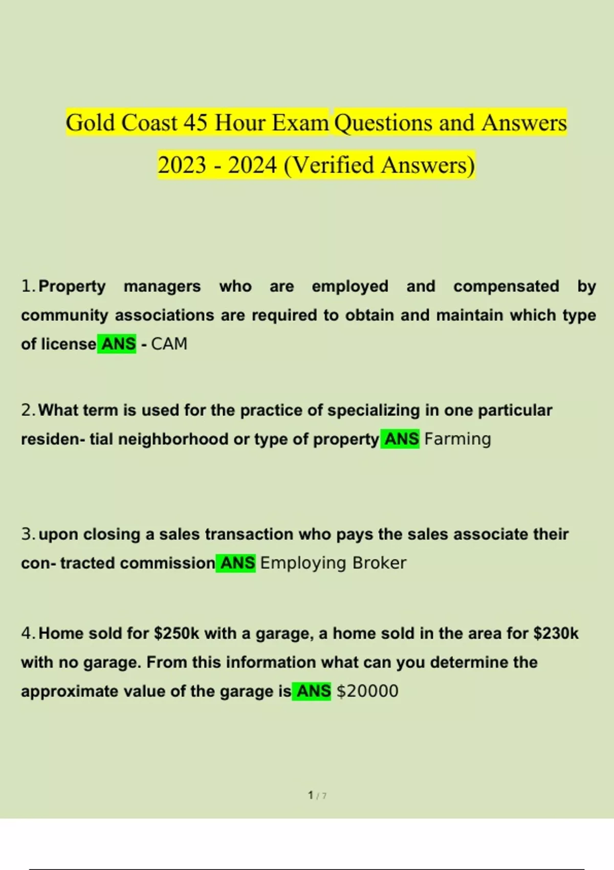 Gold Coast Real Estate Exam Questions and Answers (Verified Answers by Expert)