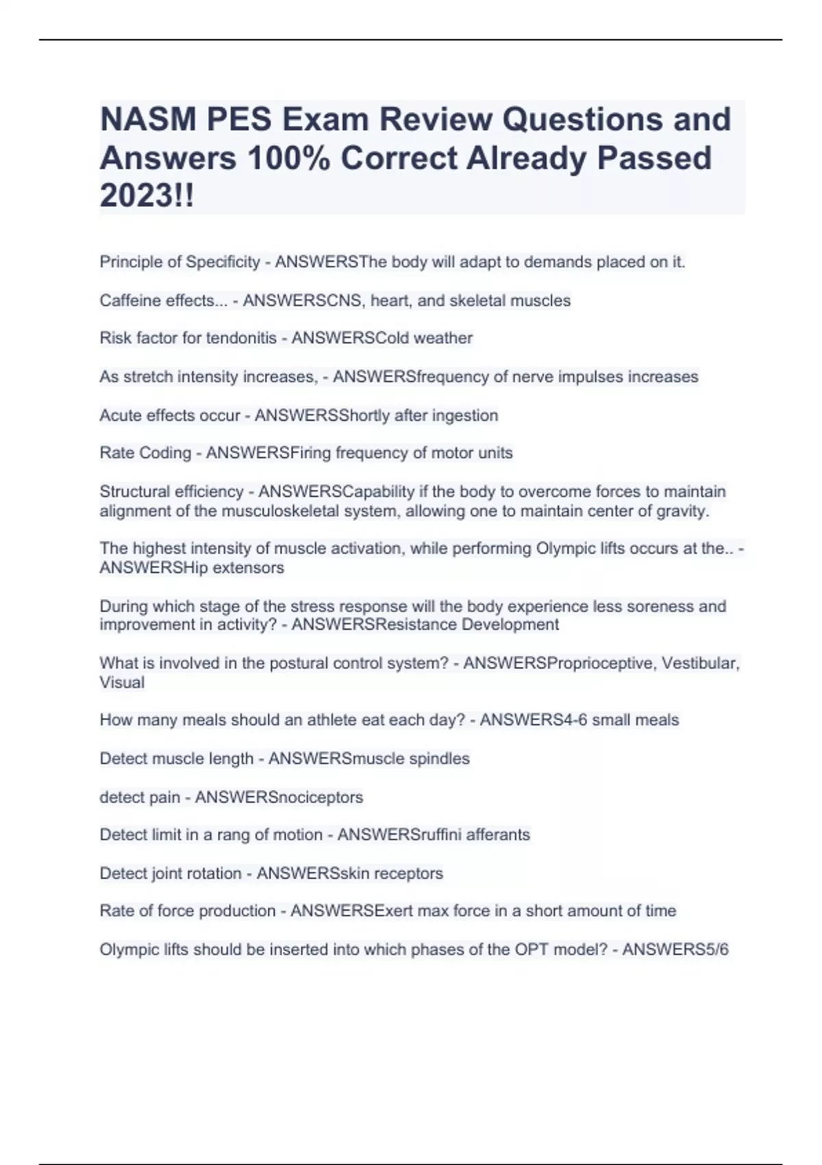NASM Personal Training/ NASM PES Certification STUDY BUNDLE Questions and Answers 100% CorrectNASM Personal Training/ NASM PES Certification STUDY BUNDLE Questions and Answers 100% CorrectNASM Personal Training/ NASM PES Certification STUDY BUNDLE Questions and Answers 100% CorrectNASM Personal Training/ NASM PES Certification STUDY BUNDLE Question