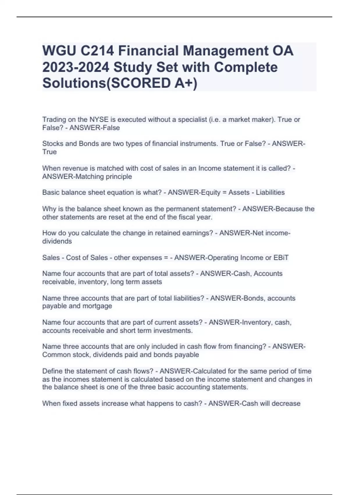 WGU C214 Financial Management Overview Concept Quiz Answers 100% Correct(SCORED A+)Exam BundlesWGU C214 Financial Management Overview Concept Quiz Answers 100% Correct(SCORED A+)Exam BundlesWGU C214 Financial Management Overview Concept Quiz Answers 100% Correct(SCORED A+)Exam BundlesWGU C214 Financial Management Overview Concept Quiz Answers 100%