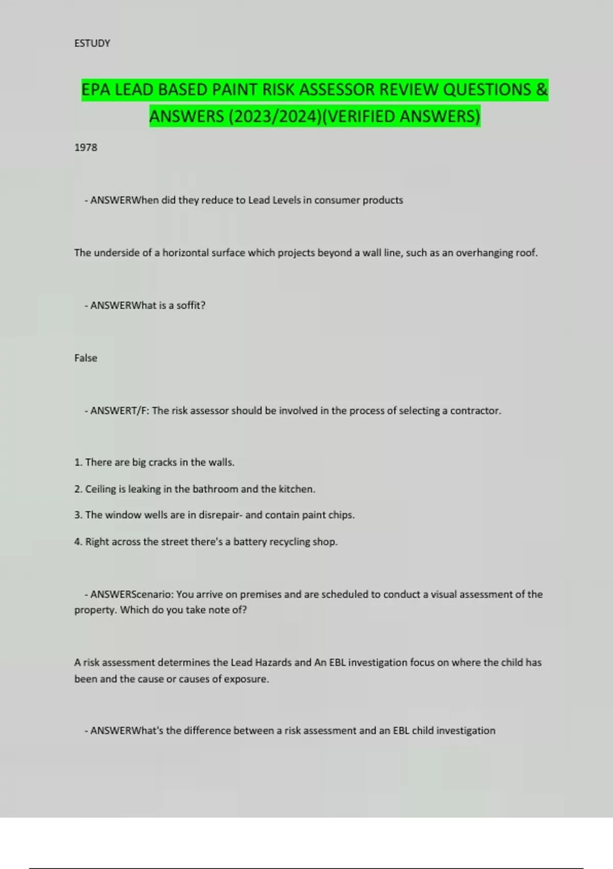 EPA LEAD BASED EXAM 2023 PACKAGE DEAL