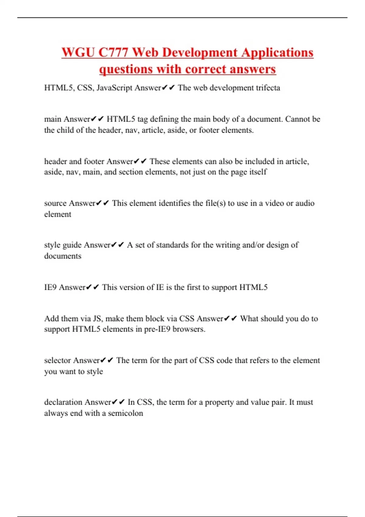 WGU C777 Web Development Application Tests Bundle