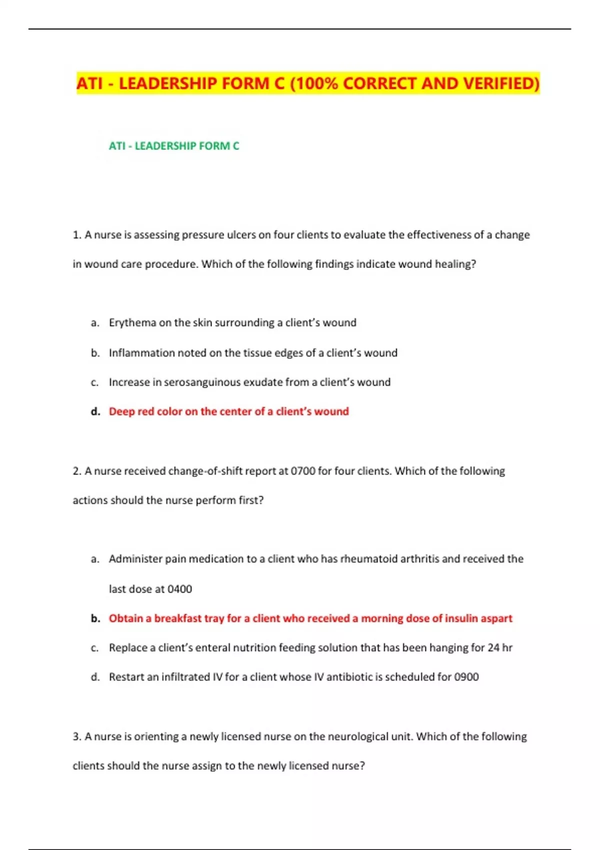 1 Exam (elaborations) ATI - LEADERSHIP FORM A (100% CORRECT AND VERIFIED) 2 Exam (elaborations) ATI - LEADERSHIP FORM B (100% CORRECT AND VERIFIED) 3 Exam (elaborations) ATI - LEADERSHIP FORM C (100% CORRECT AND VERIFIED)