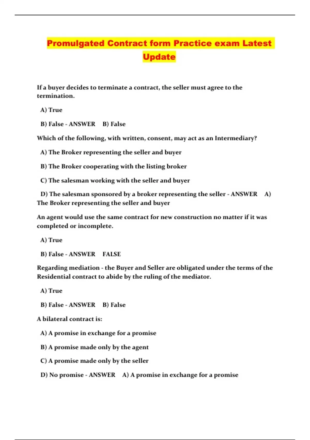 PROMULGATED CONTRACTS PACKAED EXAMS LATEST UPDATE