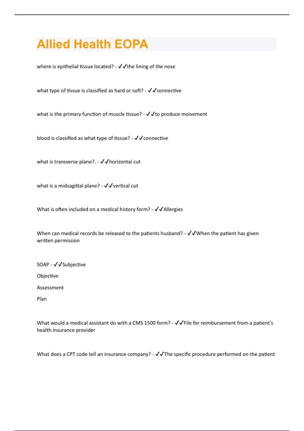 Allied Health EOPA | 139 Questions and Answers(A+ Solution guide)