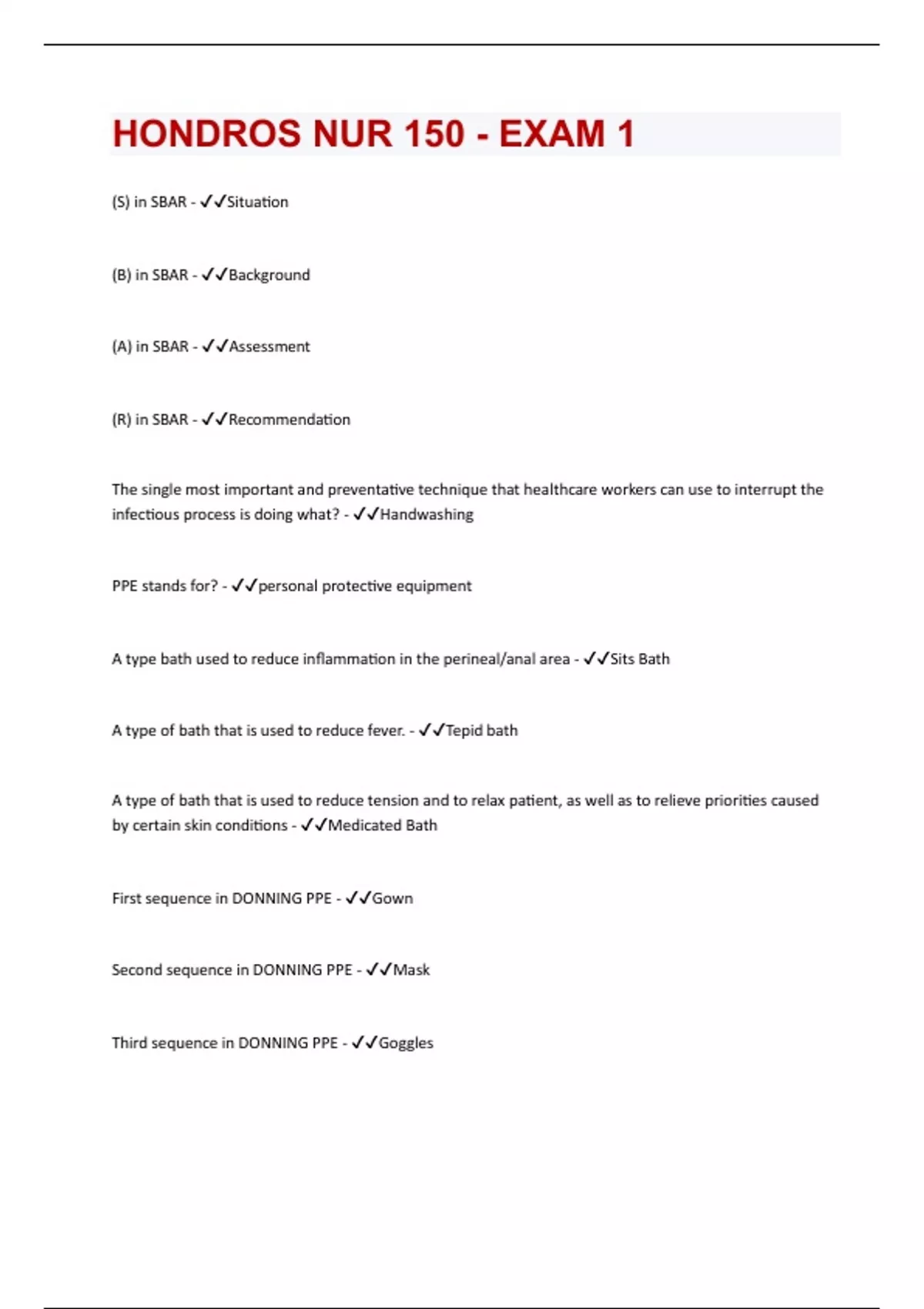 HONDROS NUR 150 - EXAM 1 Already Passed!!