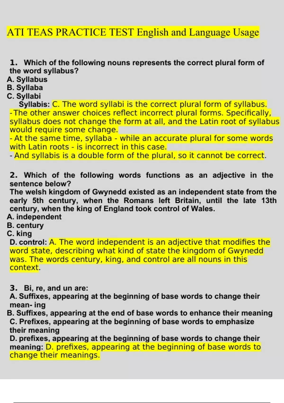 ATI Teas 7 English 2023 Questions and Answers Latest (2023 / 2024) (Verified Answers)