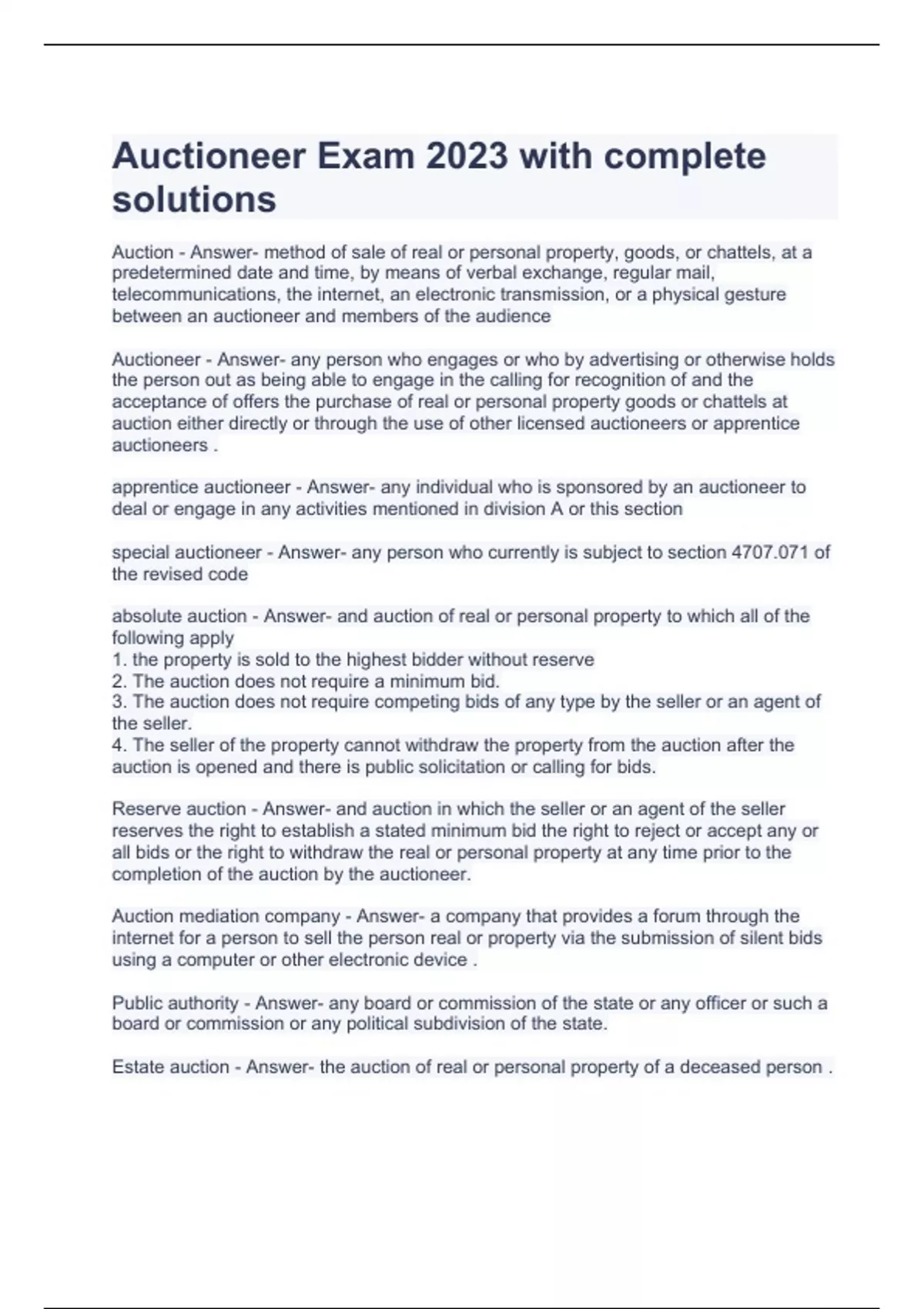 Auctioneer Exam 2023 with complete solutions PA Auctioneer Exam Questions and Answers (Graded A) Ky Board of Auctioneer Test 2023 Questions and Answers Indiana Auctioneer Licensure Exam 2023 Questions and Answers Arkansas Auctioneer Exam with complete solutions PA Auctioneer Exam Multiple Choice (Graded A) AR Broker – Auctions Exam Questions with c