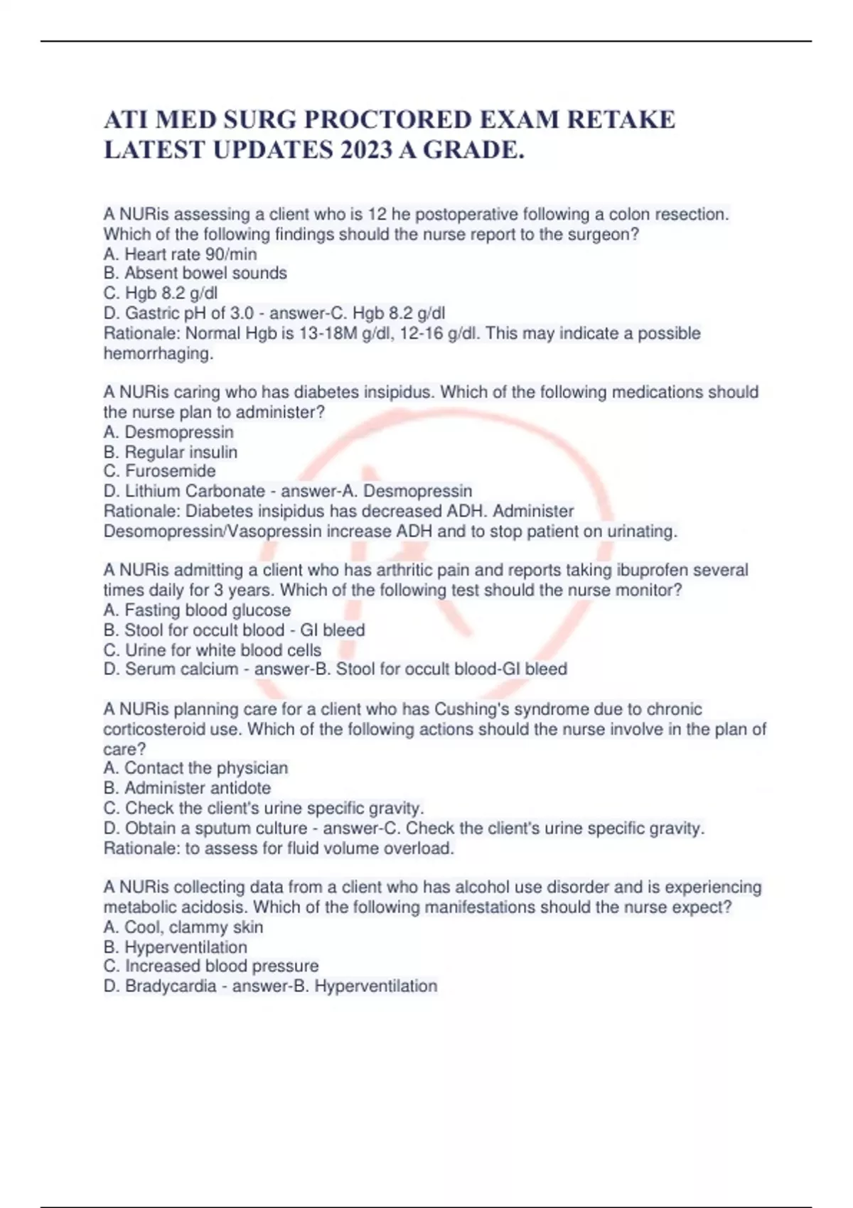 ATI MATI Med surg EXAM TEST QUESTIONS WITH 100% CORRECT ANSWERS 2023ED ATI Med Surg EXAM TEST QUESTIONS WITH 100% CORRECT ANSWERS 2023 PROCTORED PRACTICE