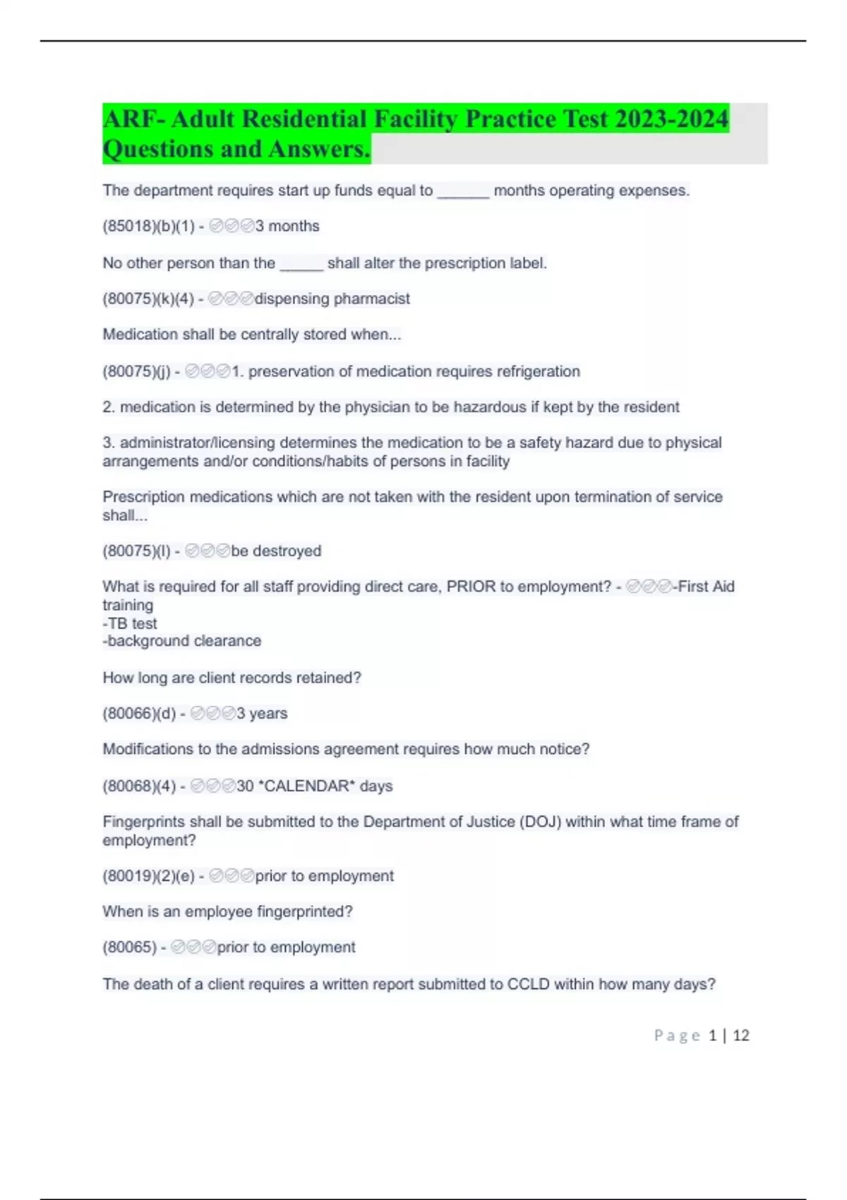 Package Deal for ARF- Adult Residential Facility Practice Tests Questions and Answers.Package Deal for ARF- Adult Residential Facility Practice Tests Questions and Answers.