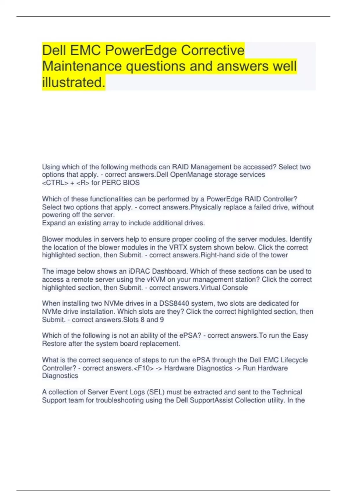Dell EnterpriDell EMC PowerEdge Specialist DES-4121 Exam Questions with complete solutions.se Course Study Guide questions and answers latest .ES202STG00464_POST Dell Storage Corrective Maintenance questions and answers 100% verified.