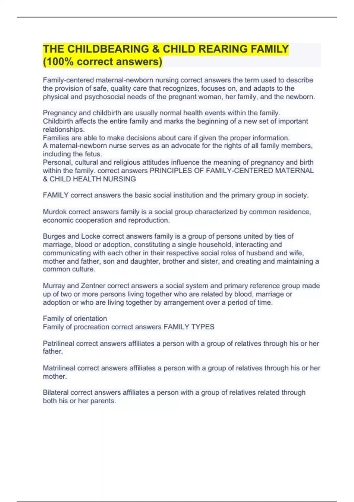 NURS 323 Childbearing Family- Final Review
