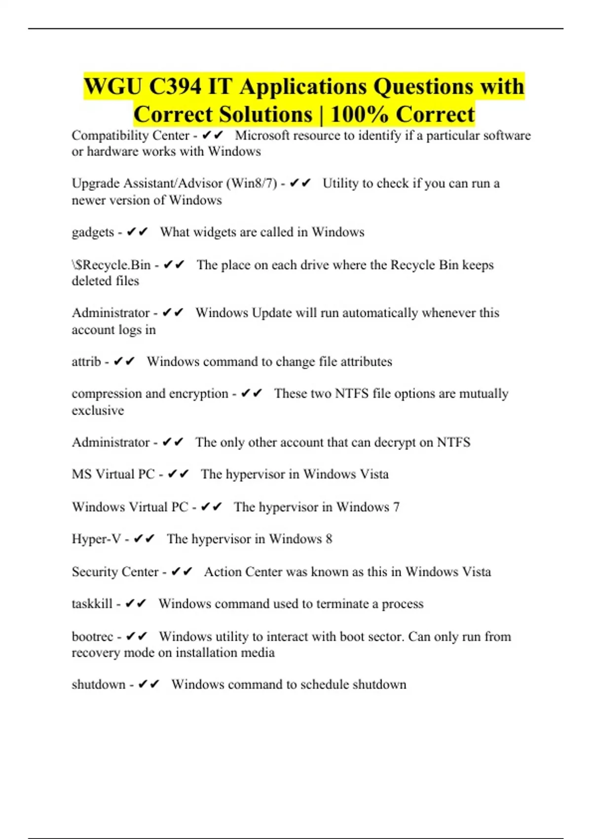 WGU C394 : Quizzes Questions with Correct Solutions | Exam Bundle