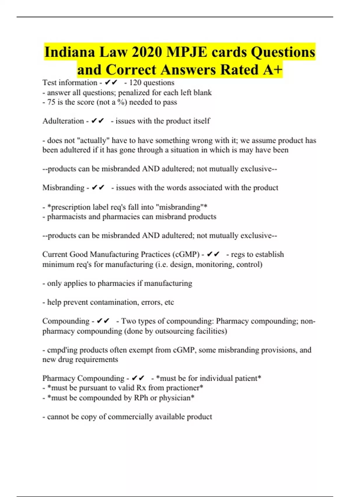 MPJE Indiana Test Questions with 100% Correct Answers Test Bundle
