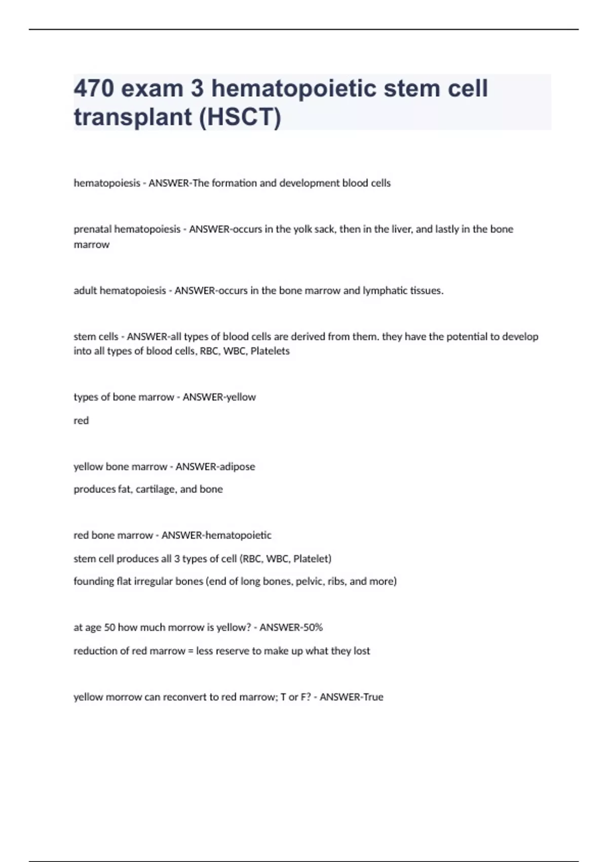 470 exam 3 hematopoietic stem cell transplant (HSCT)