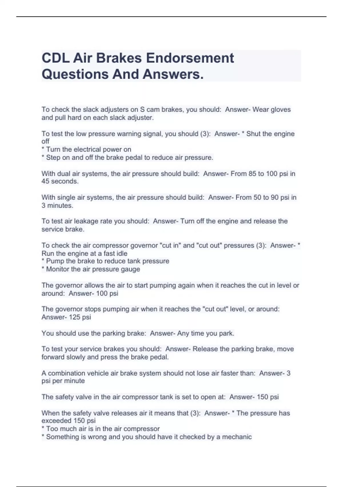 CDL Air Brakes Endorsement Questions And Answers.,CDL Air Brake Practice Test Questions And Answers.,CDL Air Brake Endorsement Exam Solved 100% Correct.,CDL Air Brakes Test Quizzes And Answers.,CDL Air Brakes Practice Test #1