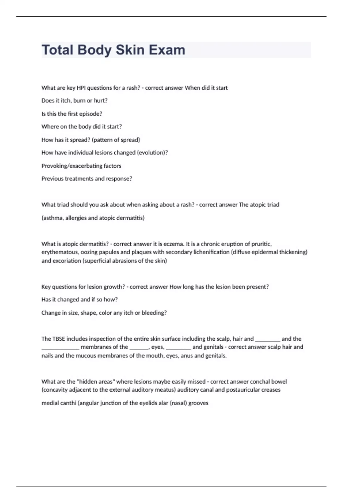 Total Body Skin Exam question n answers graded A+ 2023