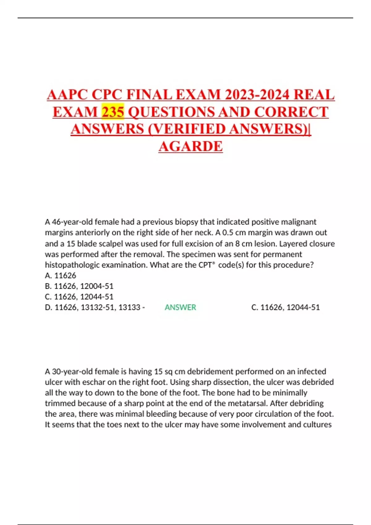 1 Exam (elaborations) AAPC CPC QUESTIONS 2023/2024 2 Exam (elaborations) AAPC Final Exam 2023/2024 3 Exam (elaborations) AAPC CPC Practice Exam A 4 Exam (elaborations) AAPC CPC exam prep Compliance and Regulatory 5 Exam (elaborations) CPC 2021 Exam Study Guide 6 Exam (elaborations) AAPC CPC Final Exam 2022 7 Exam (elaborations) REVIEW FOR AAPC CPC