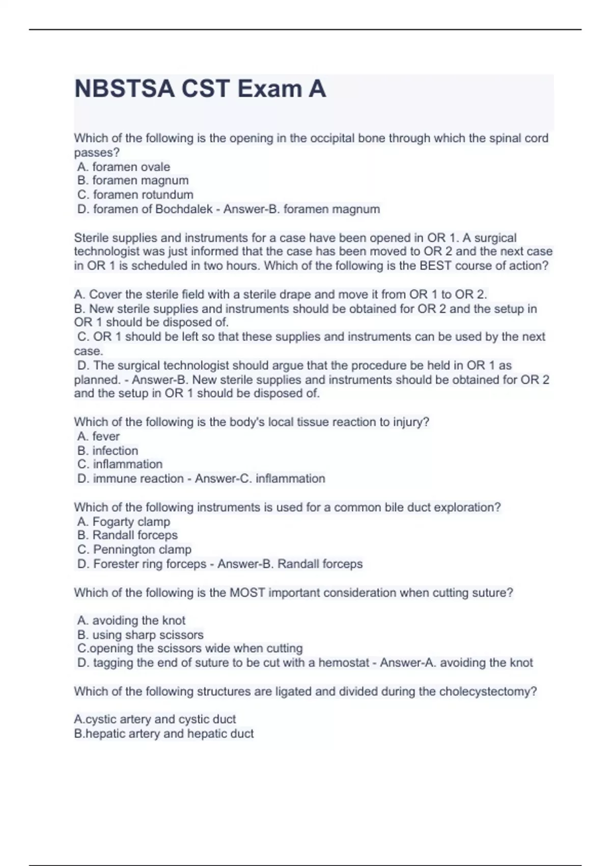 NBSTSA CST Exam A NBSTSA- Best Practice Exam B CST - NBSTSA Exams- With Correct Answers NBSTSA PSI CST EXAM REVIEW NBSTSA CST Exam B- Correct Answers NBSTSA CST Practice Exam with Answers NBSTSA Best Practice Test- B NBSTSA Practice Exam A-With Correct Answers NBSTSA Test with Answers NBSTSA Exam Pep 161-200 NBSTSA- CST Exam Prep with Answers