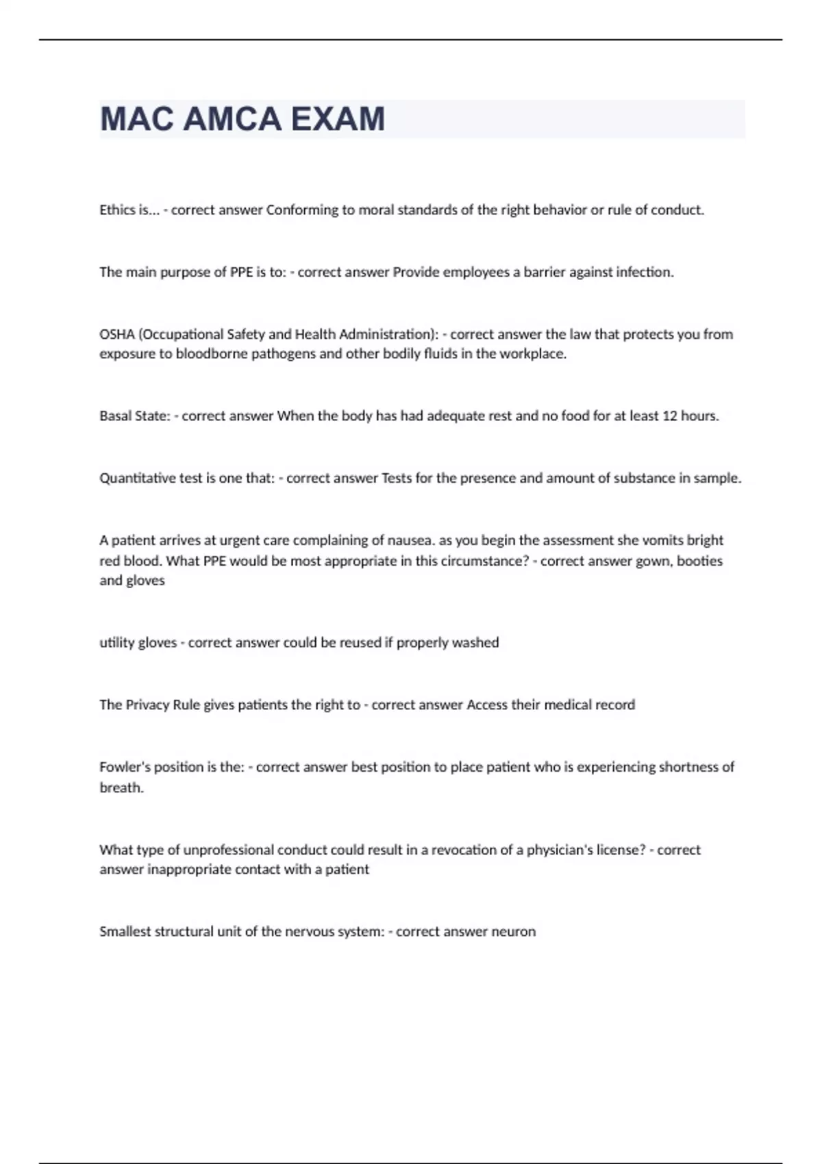 AMCA(question n answers)graded A+ already passed