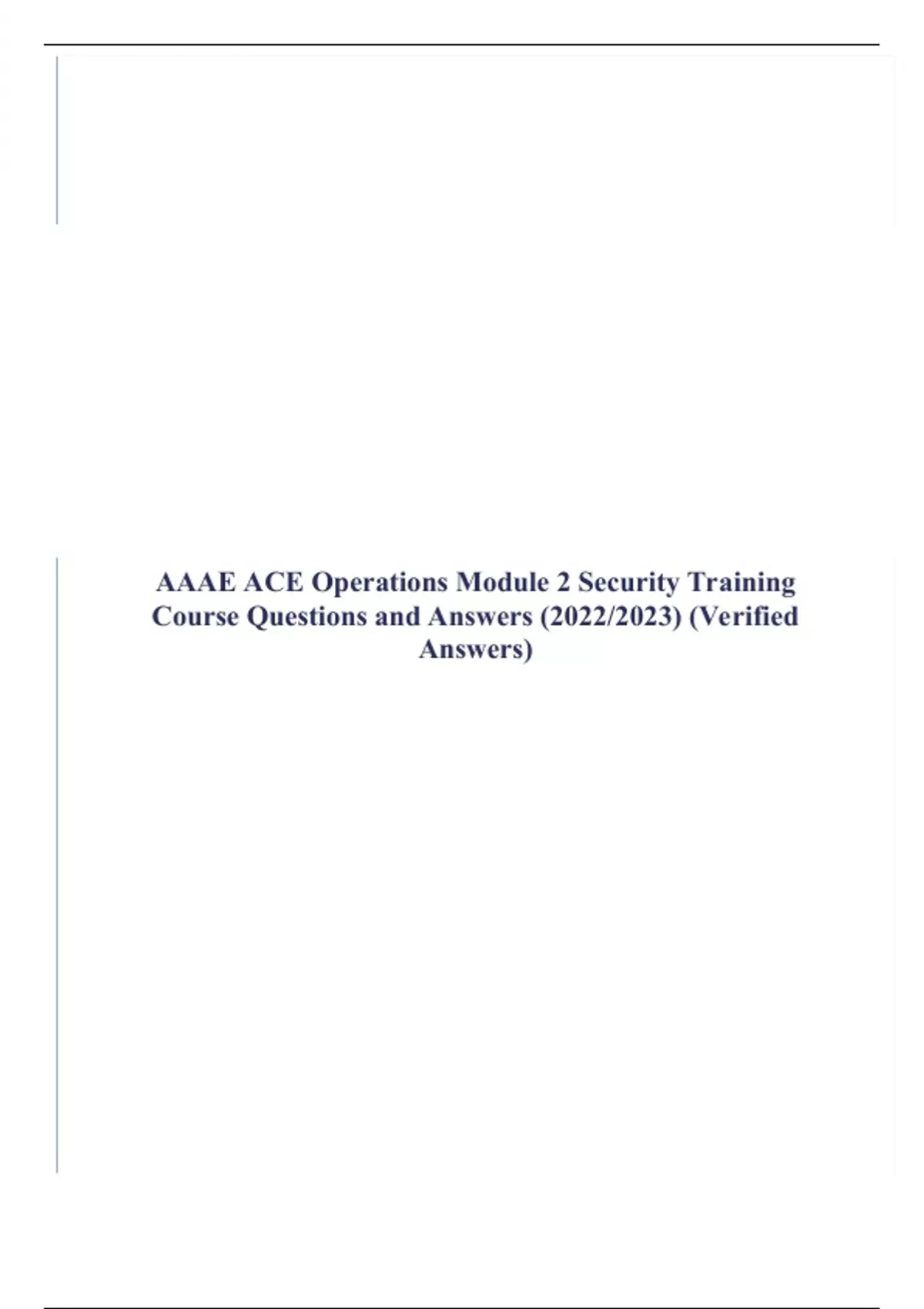 1 Exam (elaborations) AAAE ACE Operations Module 1 Security Training Course Questions and Answers (2022/2023) (Verified Answers 2 Exam (elaborations) AAAE ACE Operations Module 2 Security Training Course Questions and Answers (2022/2023) (Verified Answers) 3 Exam (elaborations) AAAE ACE Operations Module 3 Security Training Course Questions and A