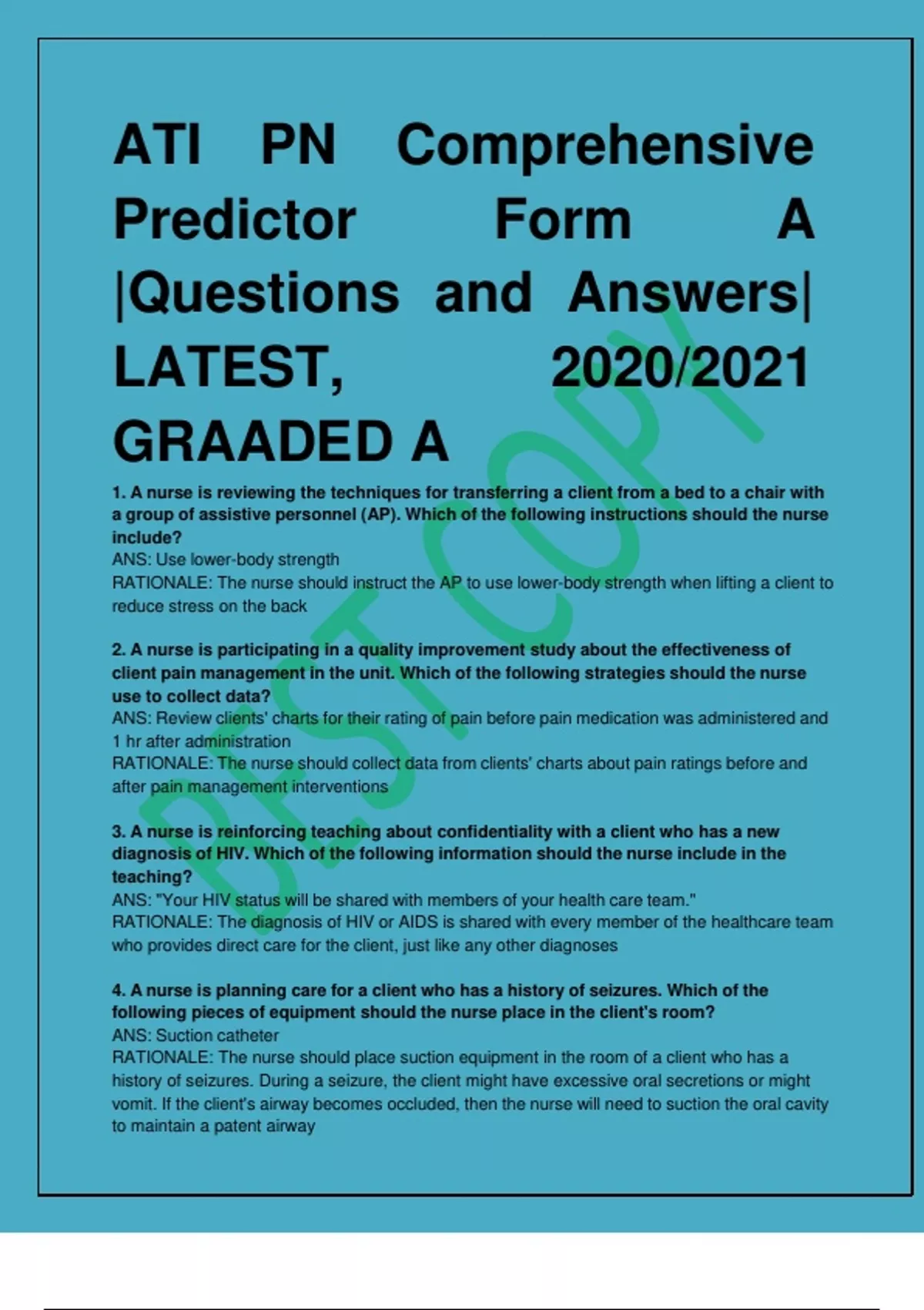 ATI COMPREHENSIVE MULTIPLE VERSION REAL EXAMS WITH VERIFIED CORRECT ANSWERS IN A BUNDLE,DOWNLOAD SCORE A .