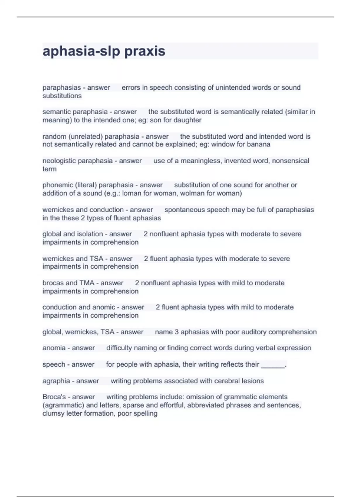 SLP Praxis Test Compilation Bundle