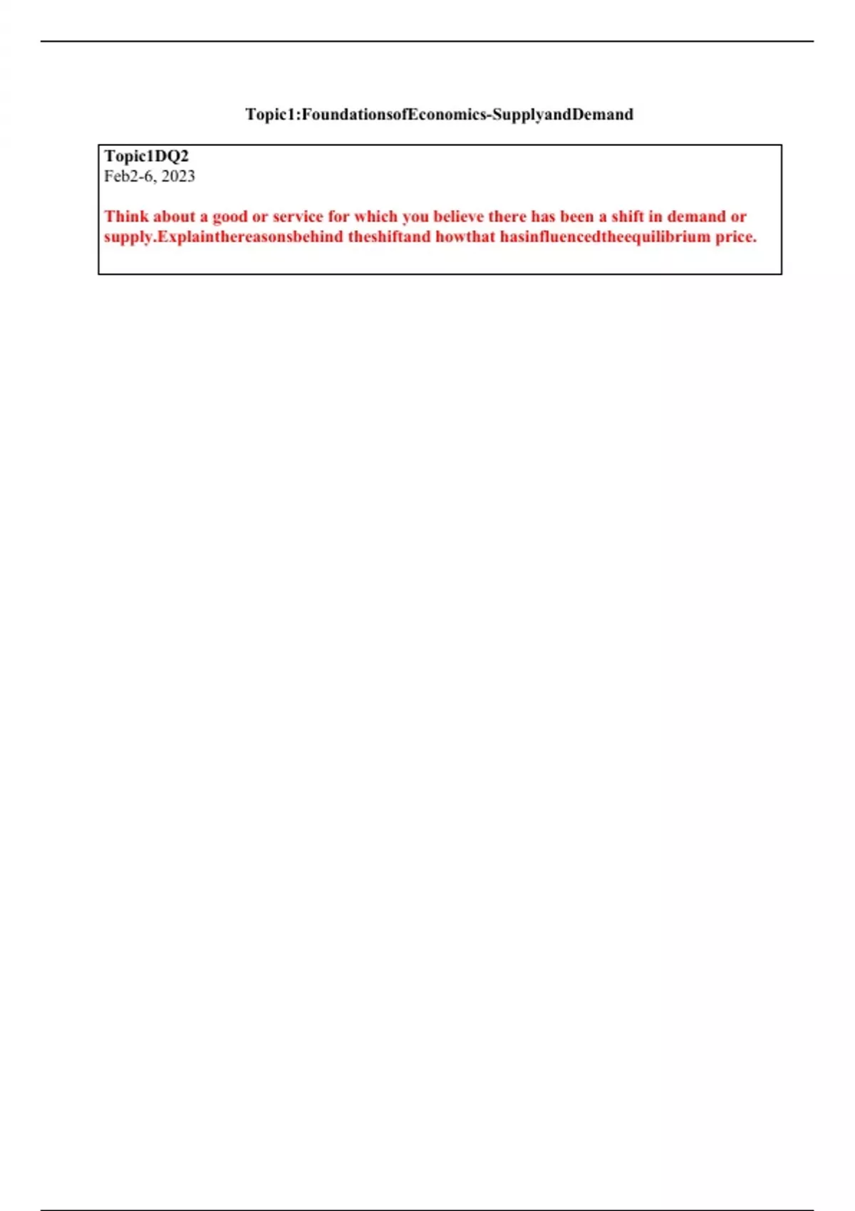 ECN 601 Topic 1 DQ 1 (Opportunity Cost) ECN 601 Topic 1 DQ 2 (Product Shift in Demand) ECN 601 Topic 1 DQ 1 plus DQ 2