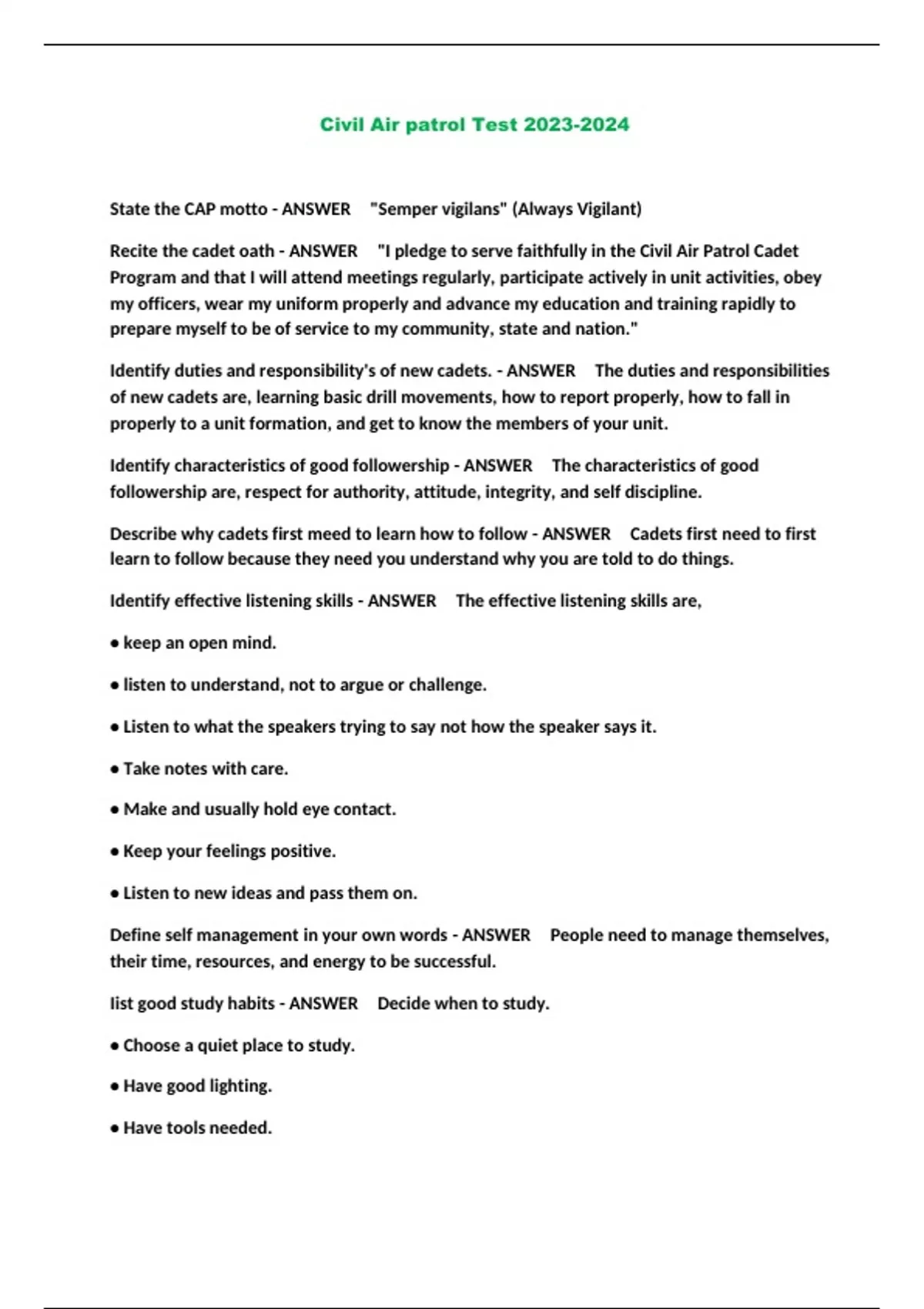 Civil Air Patrol Exam