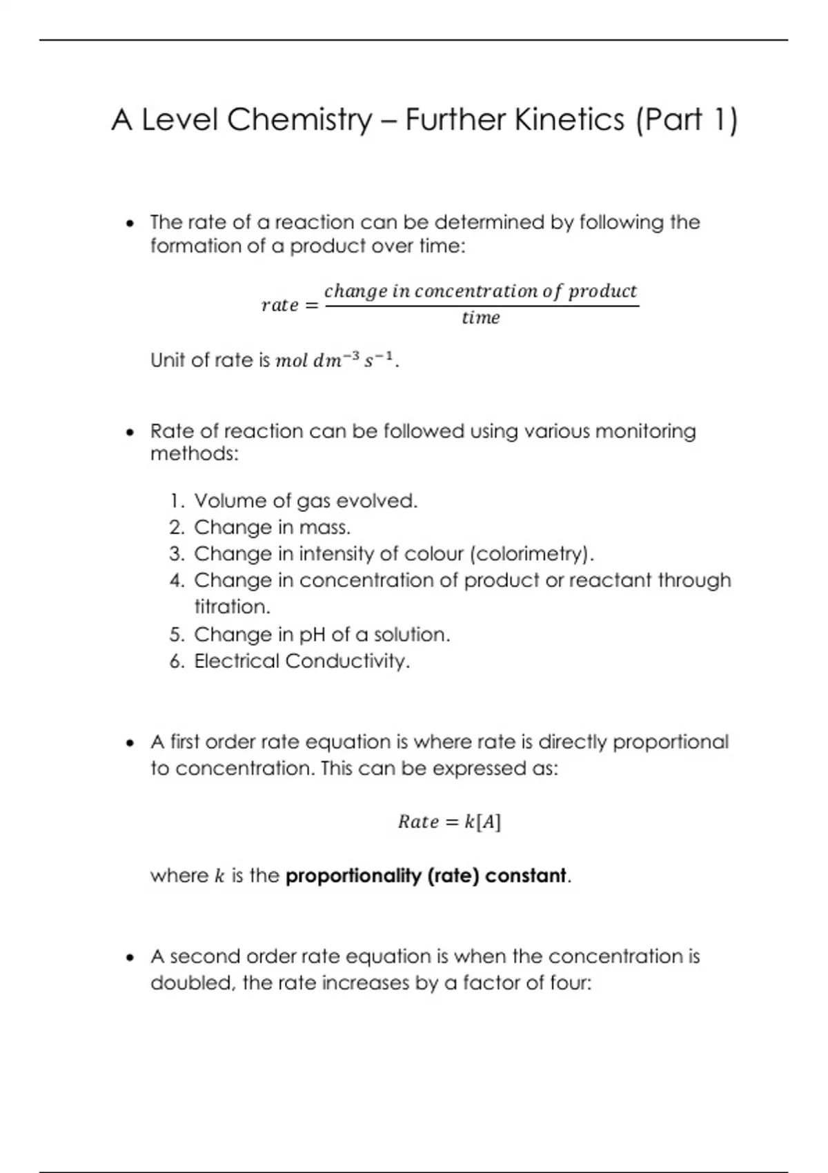 A Level Chemistry - Further Kinetics