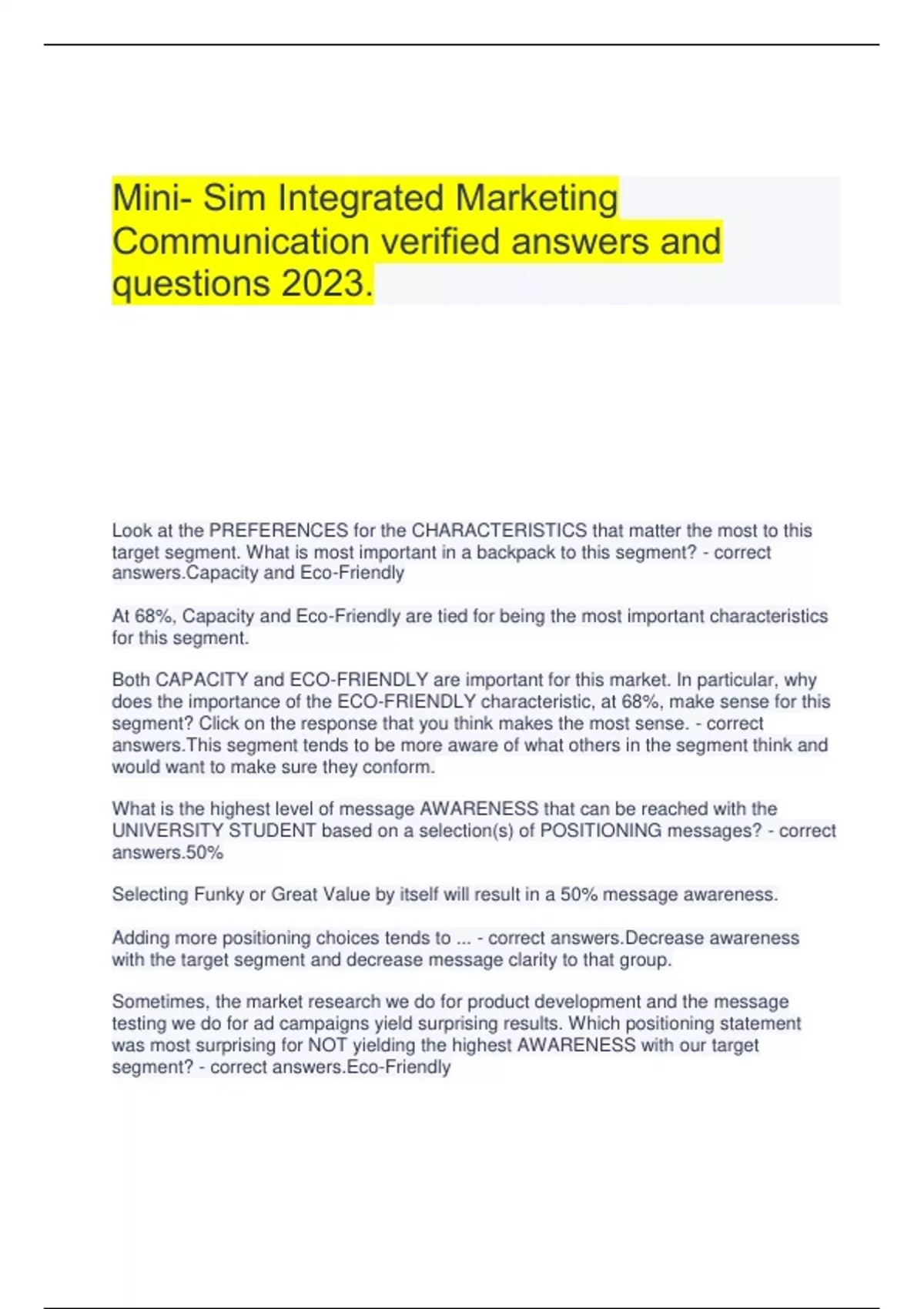 Mini- Sim Integrated Marketing Communication verified answers and questions 2023.Chapter 14_NEW! Mini Sim_IMC MARK3300 questions and answers well illustrated.Chapter 5 Mini Sim questions and answers verified and updated.Role-Playing Simulation - Integrated Marketing Communication: Soar Travel Agency questions and answers 100% verified.