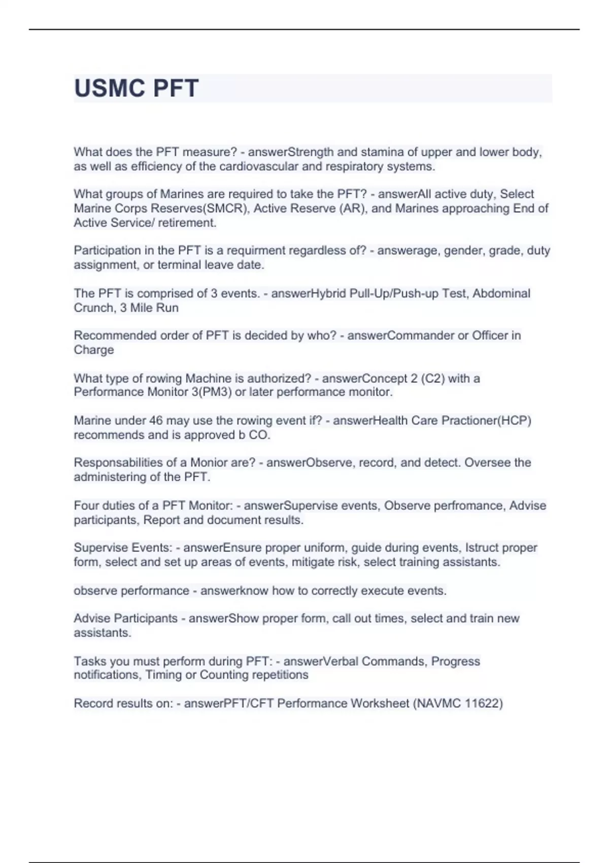 Exam (elaborations) CFT monitor certification Questions with correct Answers Exam (elaborations) CFT Monitor USMC Questions with complete solutions Exam (elaborations) CFT test 1 Questions with correct Answers Exam (elaborations) CFT Training Questions with correct Answers Exam (elaborations) CFT Questions with correct Answers Exam (elab