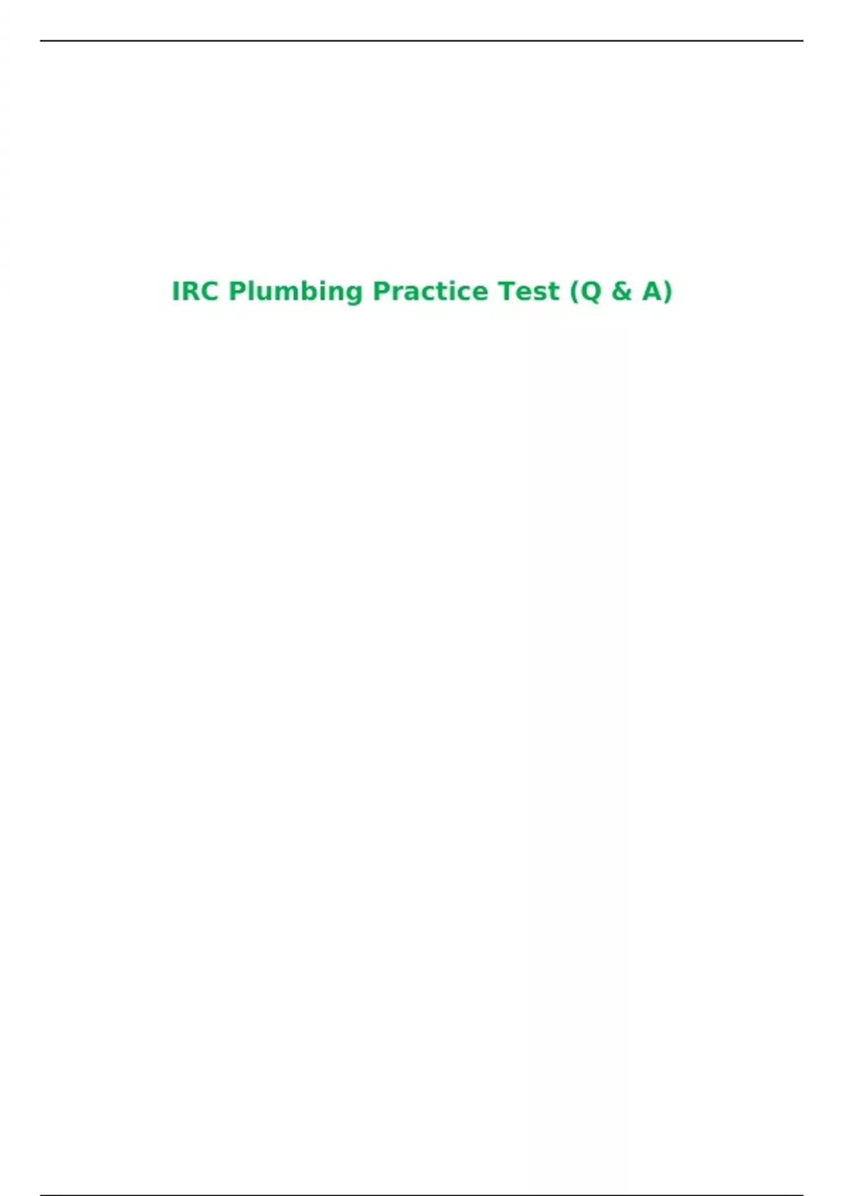 IRC Plumbing Practice Test (Q & A)