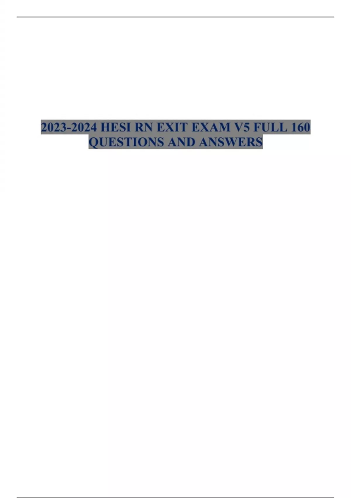 HESI RN EXIT EXAM VERSION 6 160 EXAM QUESTIONS AND ANSWERS UPDATED 2023 ALREADY GRADED A GRADE.