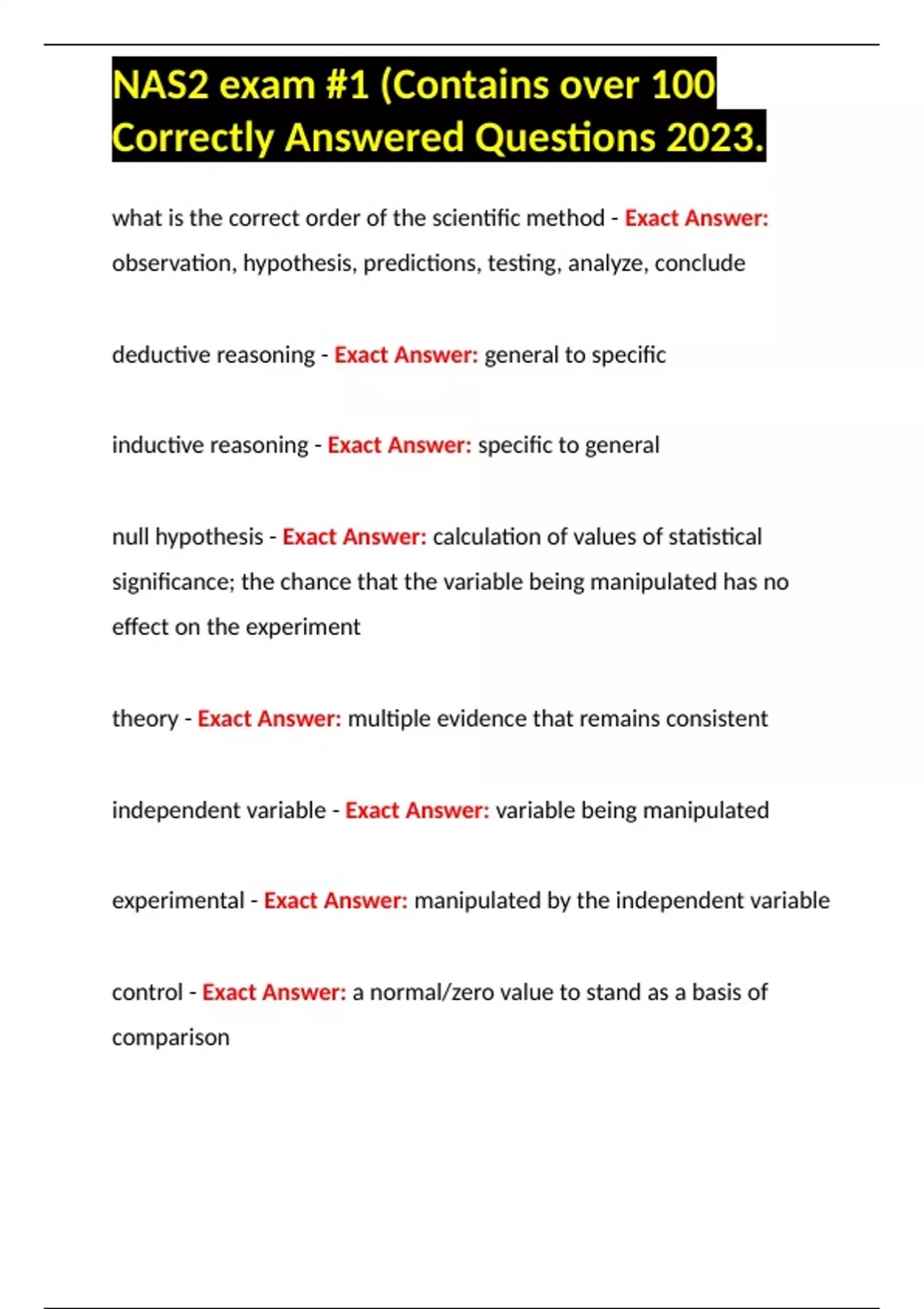 1 Exam (elaborations) NAS2 Exam Ch (2,4,5,6) Questions & Answers with Correct Solutions 2023. 2 Exam (elaborations) NAS2 Challenge Exam Study Guide Contains 121 Questions & Answers Best Rated A+ 3 Exam (elaborations) NAS 2- INTRO TO ANATOMY & PHYSIOLOGY REVIEW STUDY GUIDE (183 CORRECTLY SOLVED QUESTIONS) UPDATE 2023. 4 Exam (elaborations) NAS 2