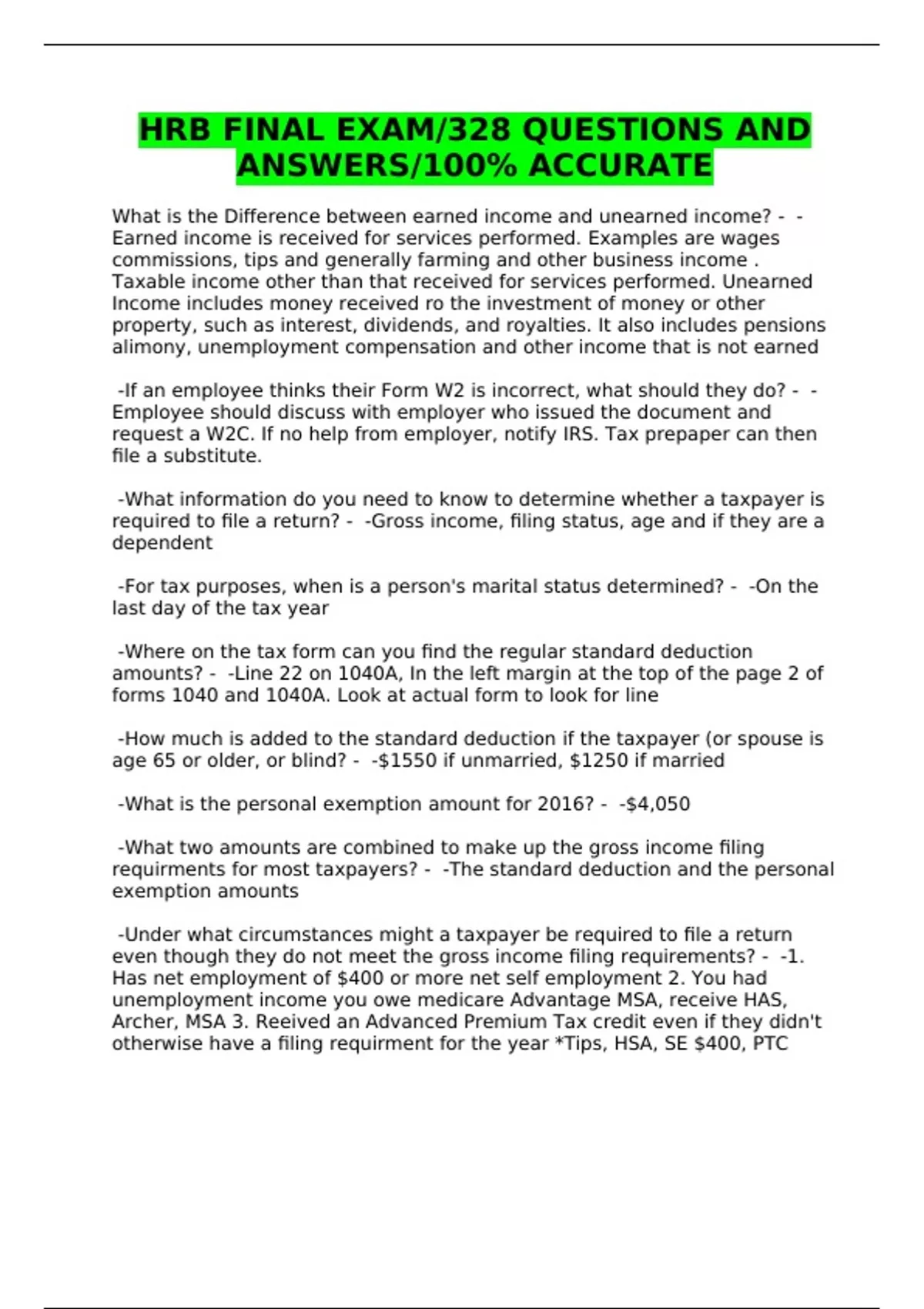 HRB EXAMS - QUESTIONS AND ANSWERS 100% ACCURATE- PACKAGE DEAL