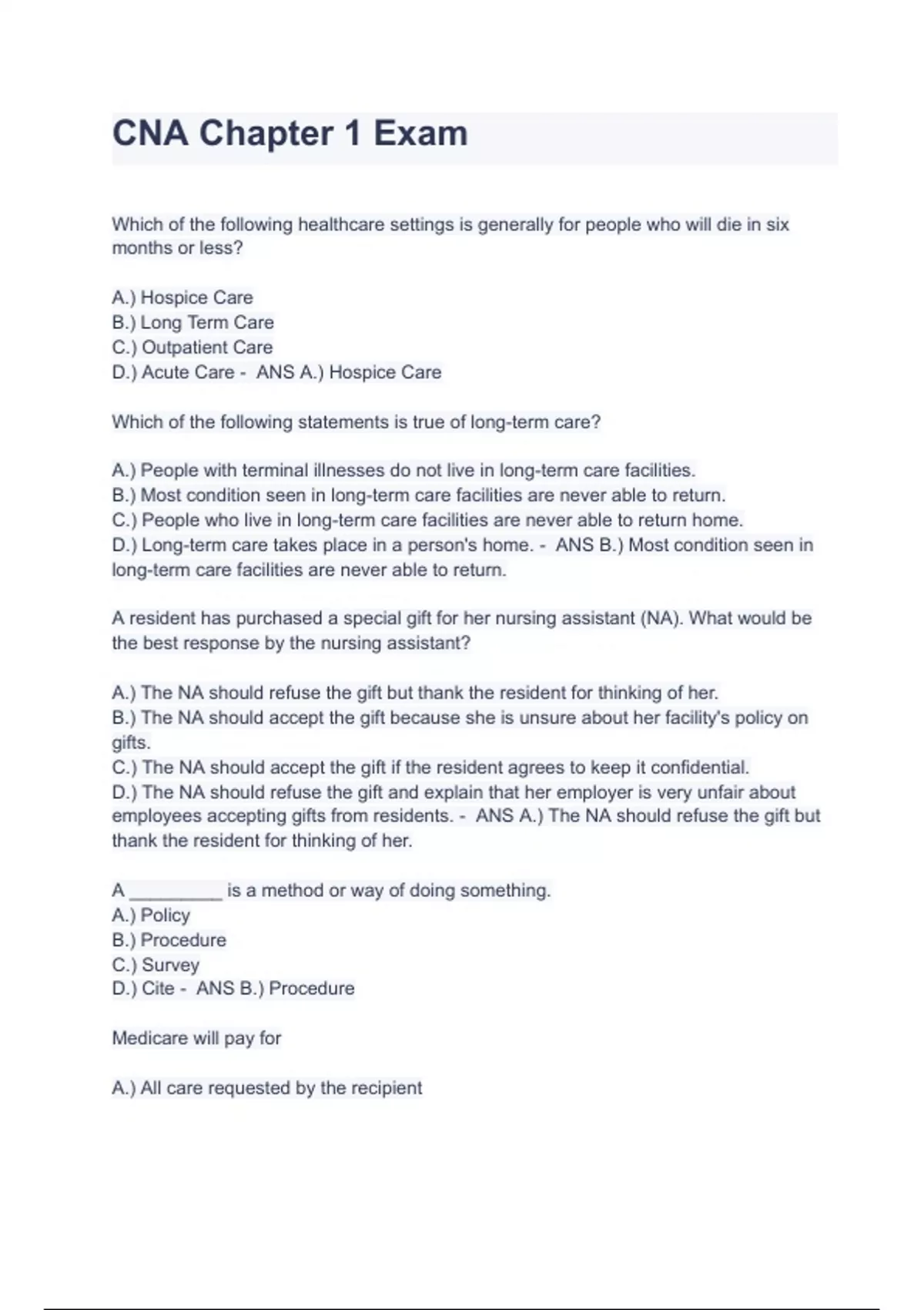 CNA: Chapter 1 Questions & Answers 2023 ( A+ GRADED 100% VERIFIED)
