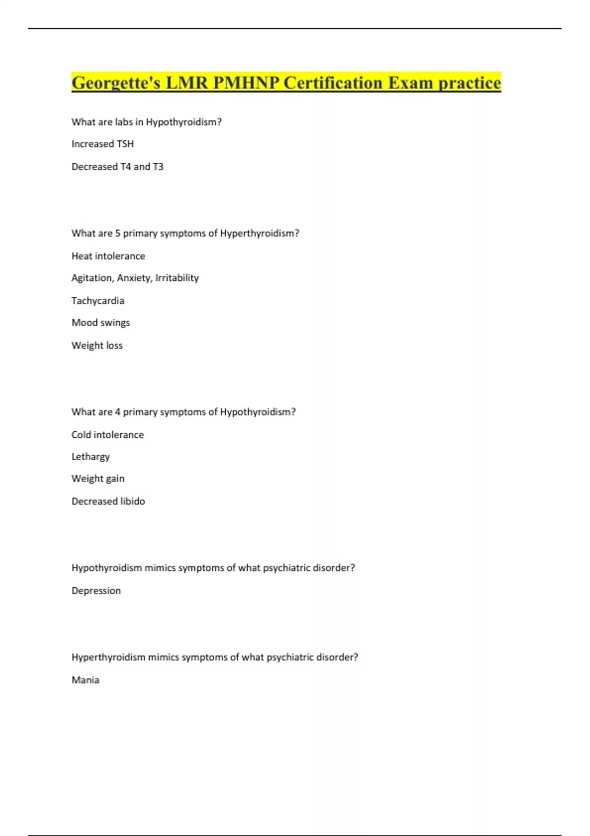 Georgette s LMR PMHNP Certification Exam practice BUNDLE