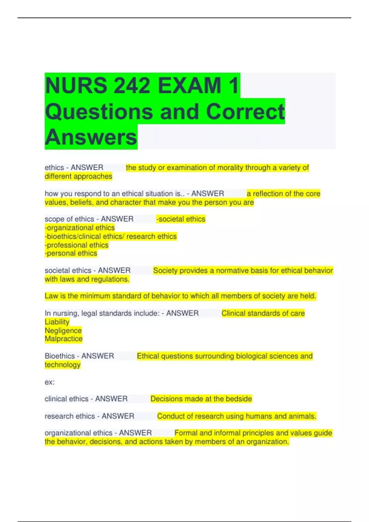 Bundle For NURS 242 Exam Questions and Answers All Correct
